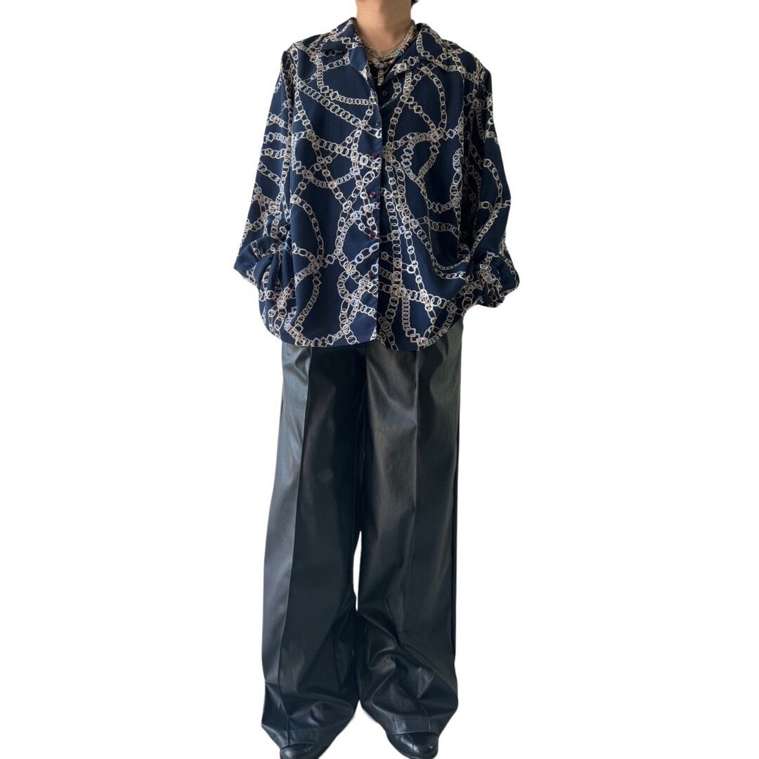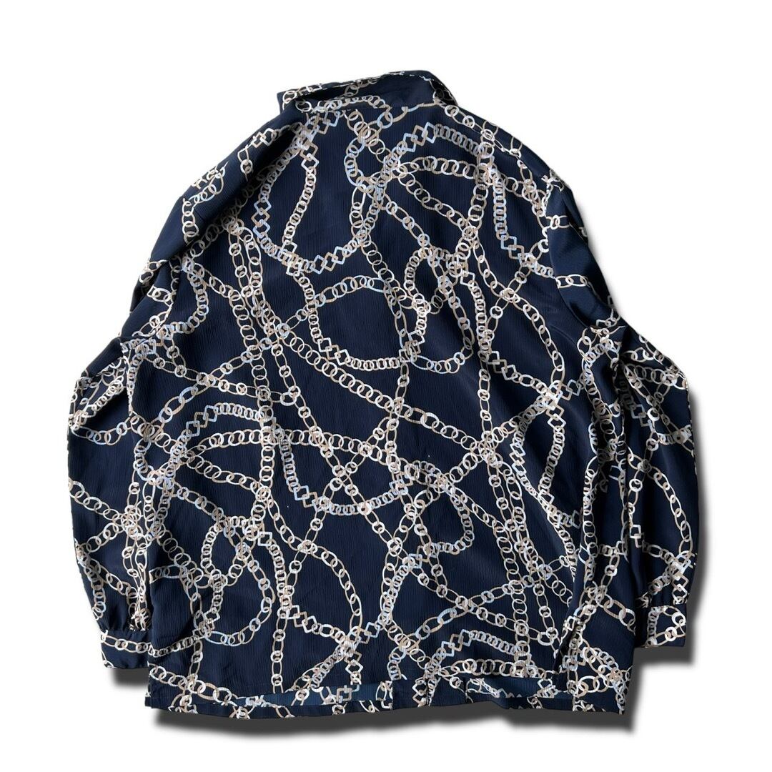 【DONNKENNY】Chain Scarf pattern L/S Open collar shirt