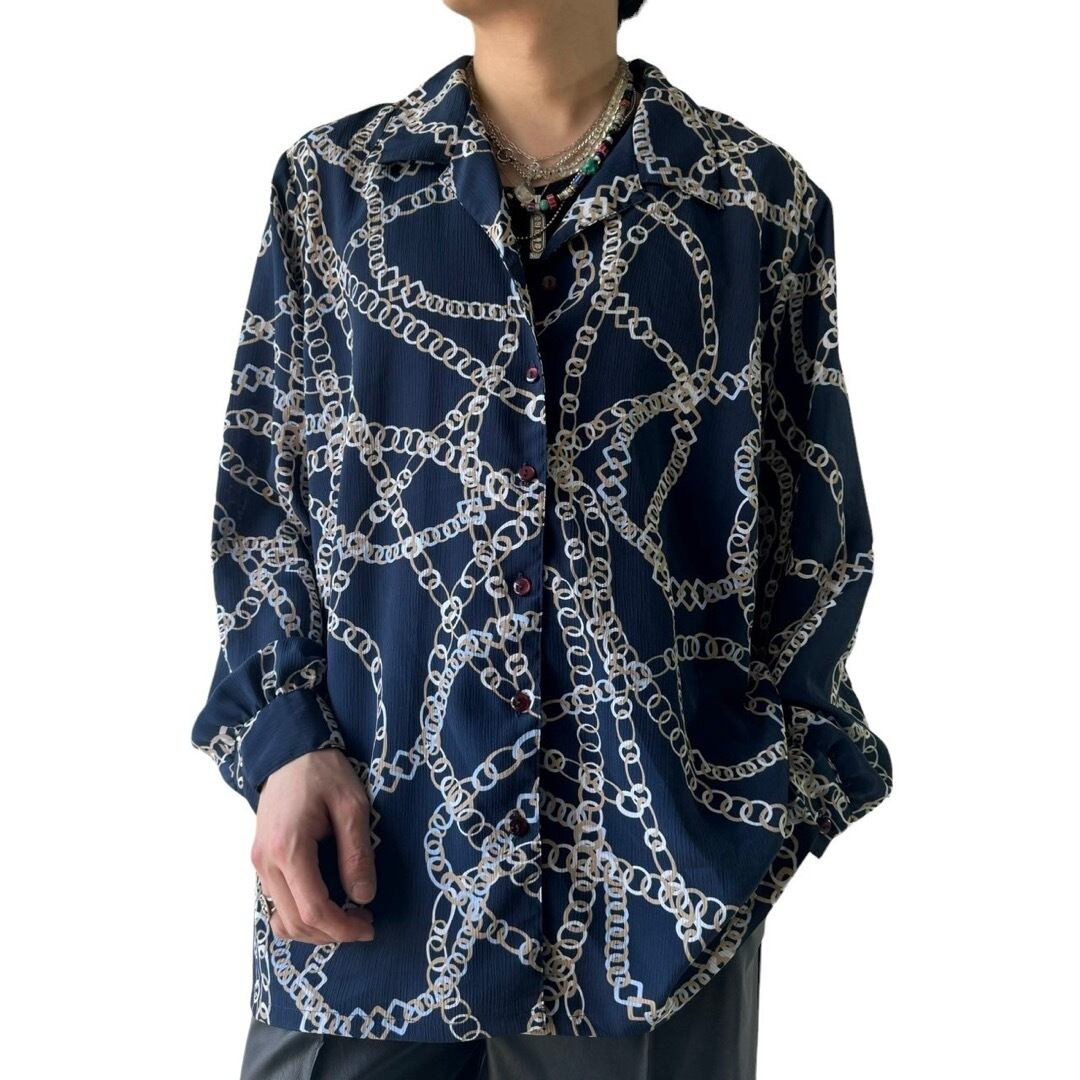Chain Scarf pattern L/S Open collar shirt