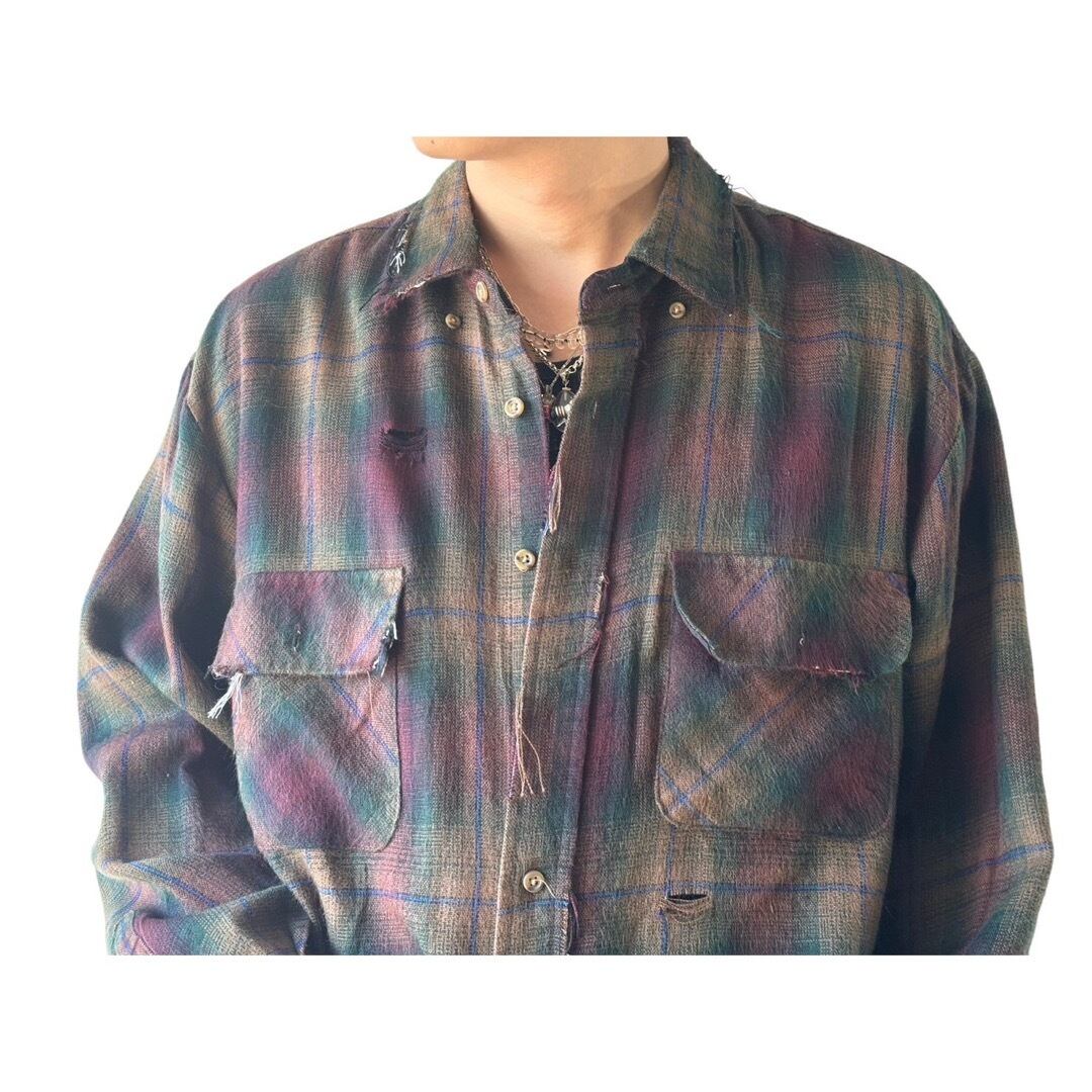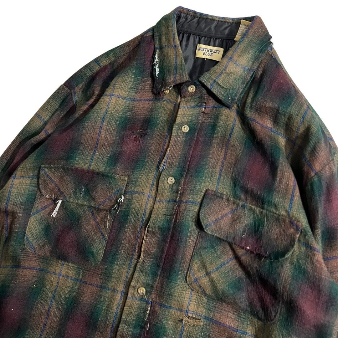 【NORTHWEST BLUE】 Crushed Design Ombre Check shirt