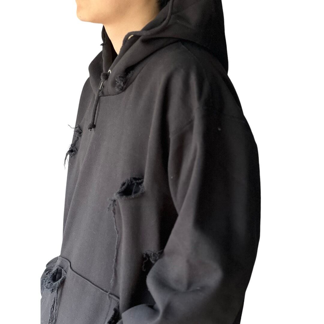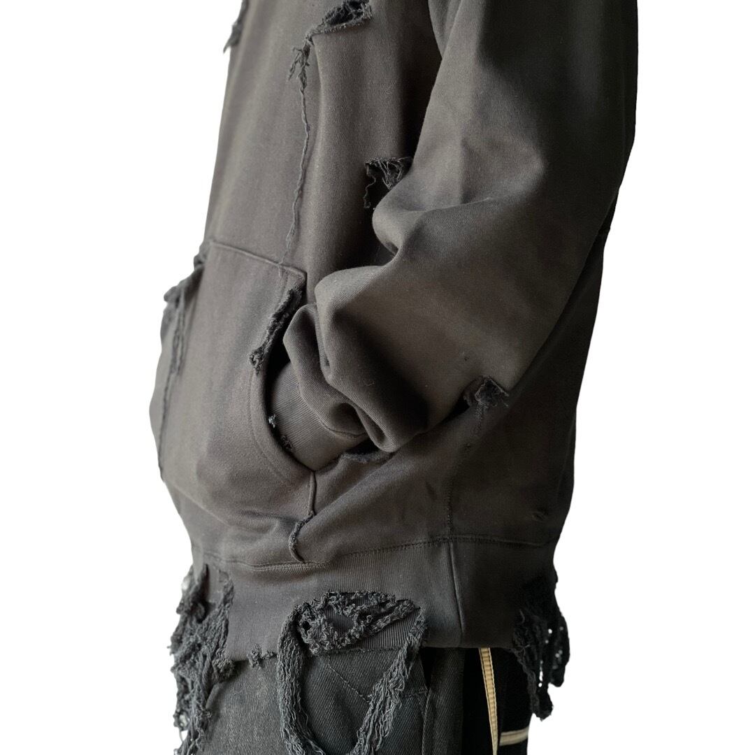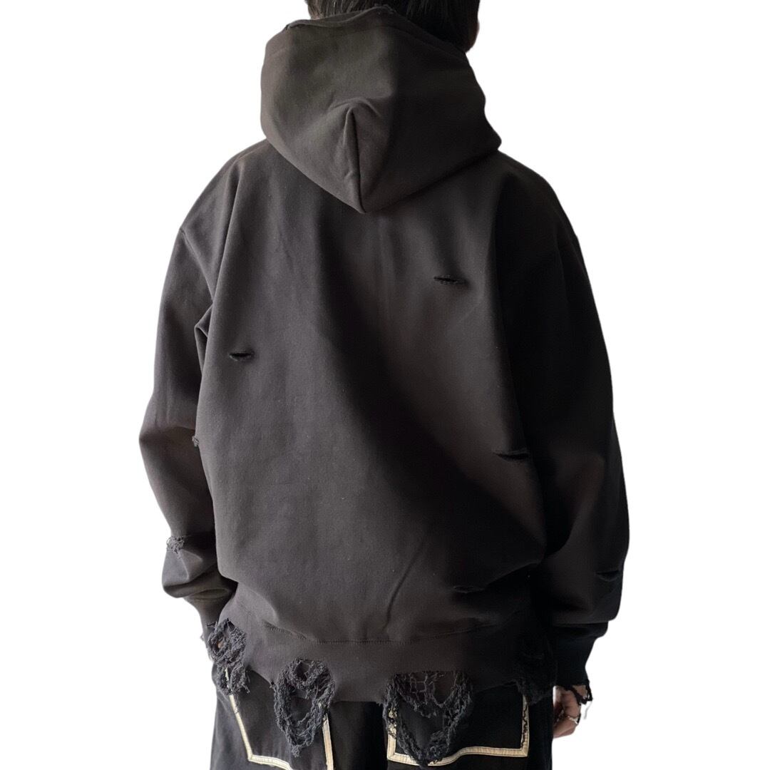 ダメージ加工を施したインパクトある仕上がりが超クールなクラッシュフーディー。