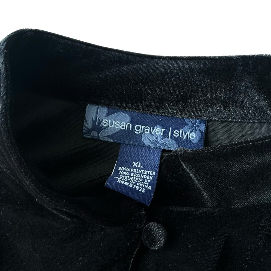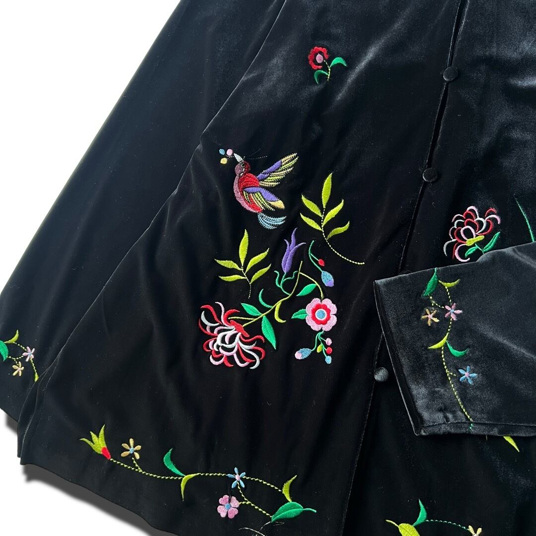 【susan graver style】 Bird/Flower Embroidery Design velours shirt "Black"