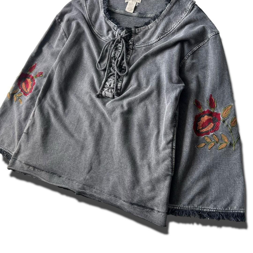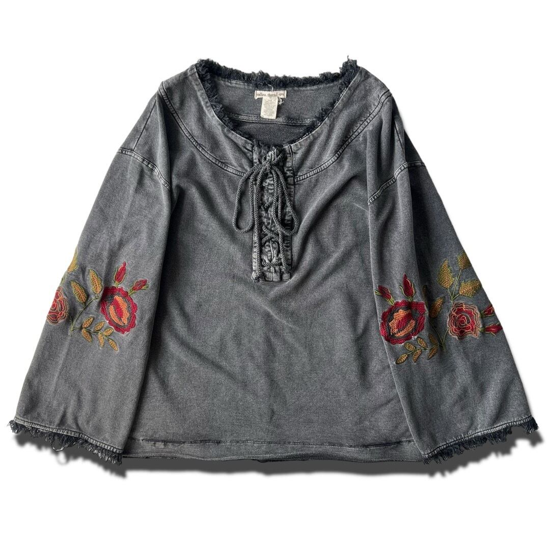 【indigo thread co】"Embroidery Decoration"Flare sleeve Indigo tunic pullover