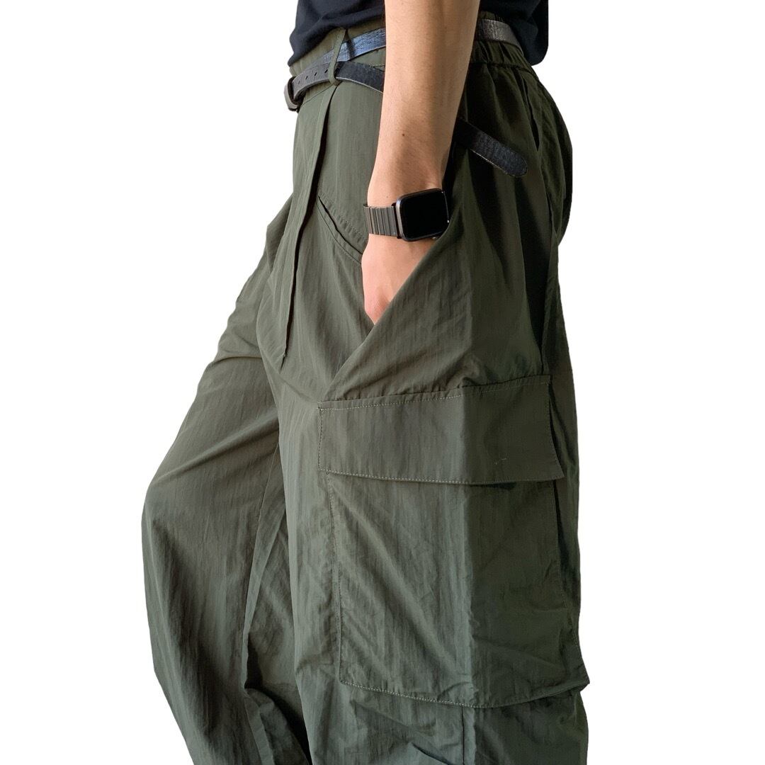 両サイドのフラップ付きのポケットの安定カーゴディテールに変則的サイドポケットが秀逸◎