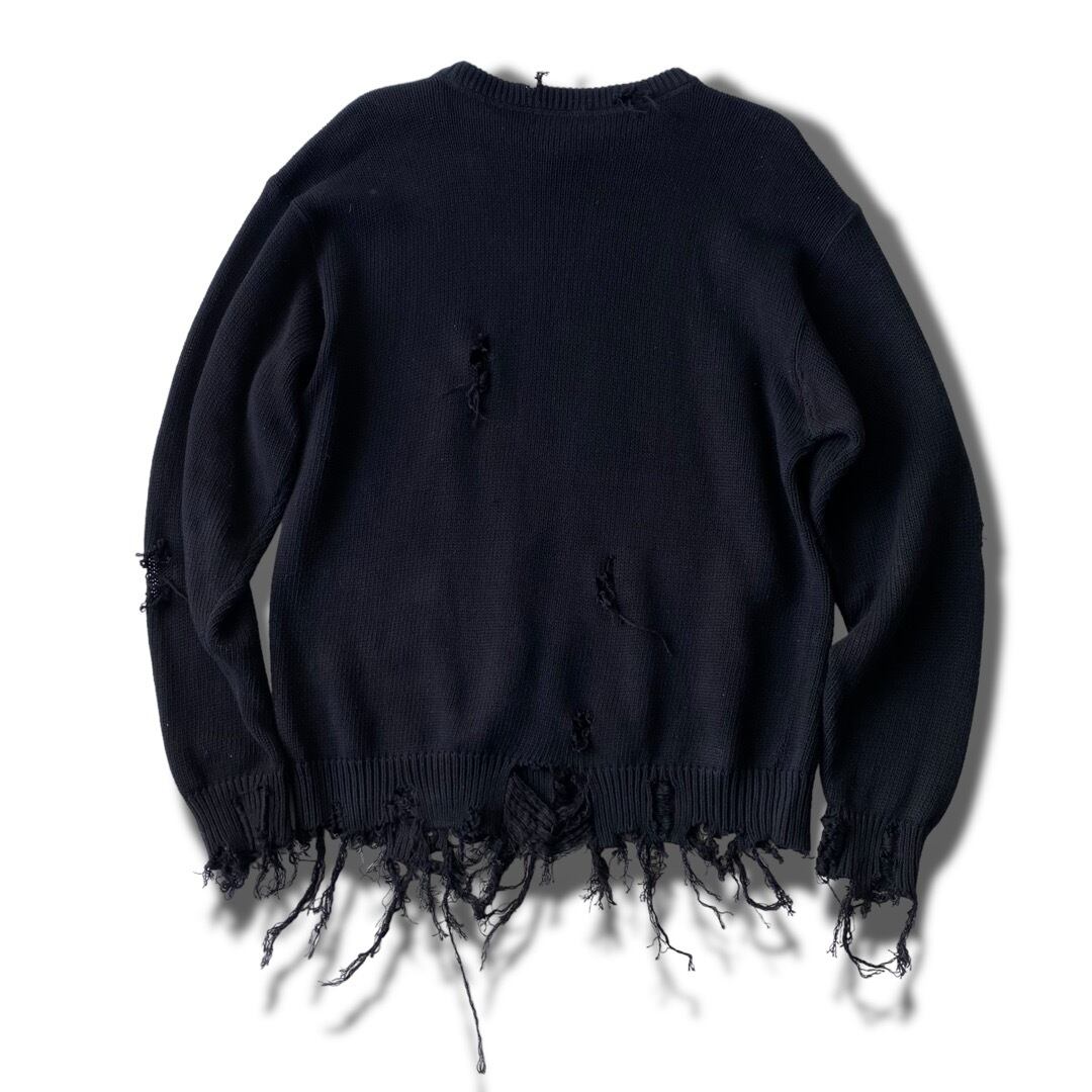 シンプルなデザインにハードめなダメージ加工を施したデザインニット❗️