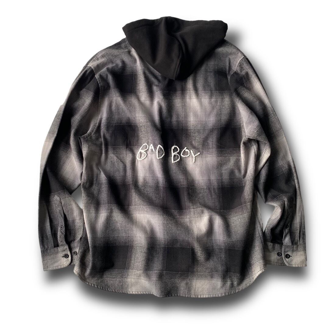 ♾NO BOUNDARIES♾ hand stitch design ombré check patterned hooded shirt size XL