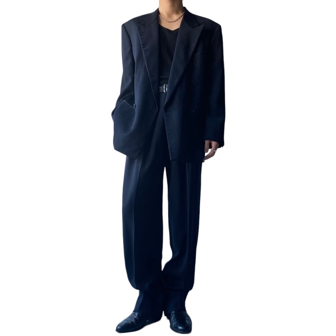 スマートな雰囲気ありながらも気負わず着れるゆったり目のサイジング◎と落ち着いたダークネイビーの安心感◎雰囲気がめちゃくちゃGood!