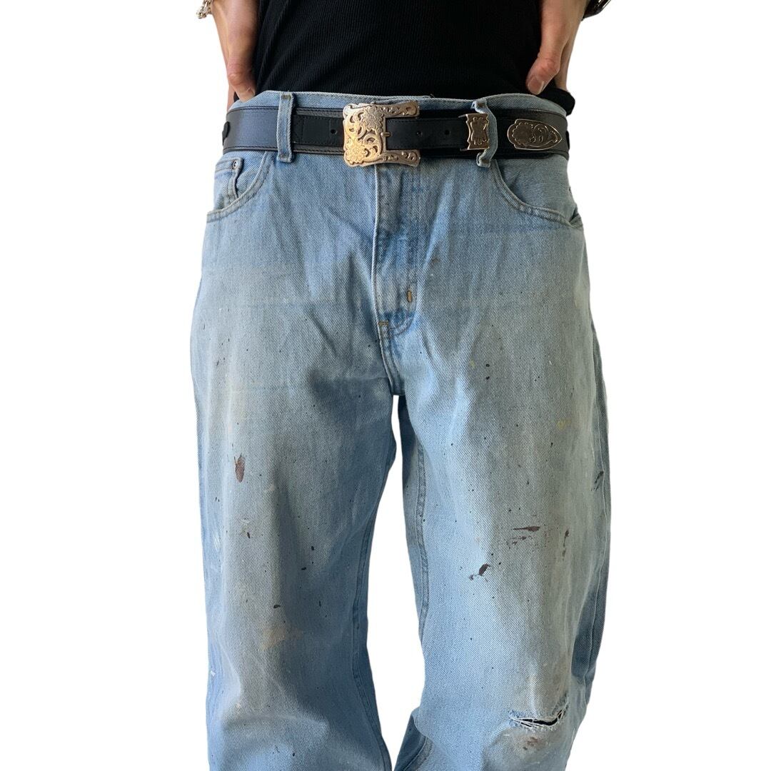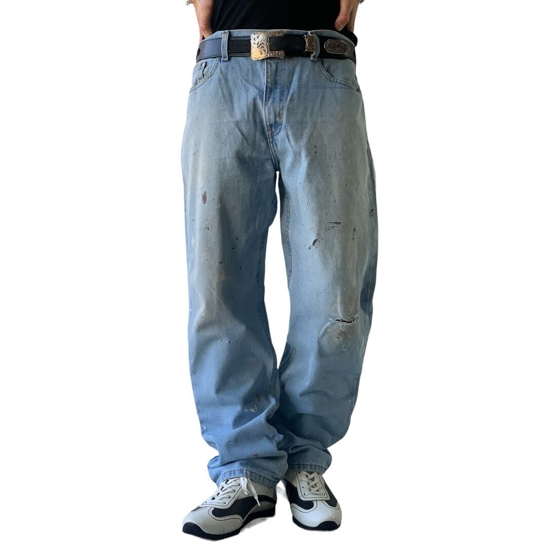 ♾️GEORGE♾️ "Painted Design" Aging Straight Damage Denim Pants SIZE:34×30