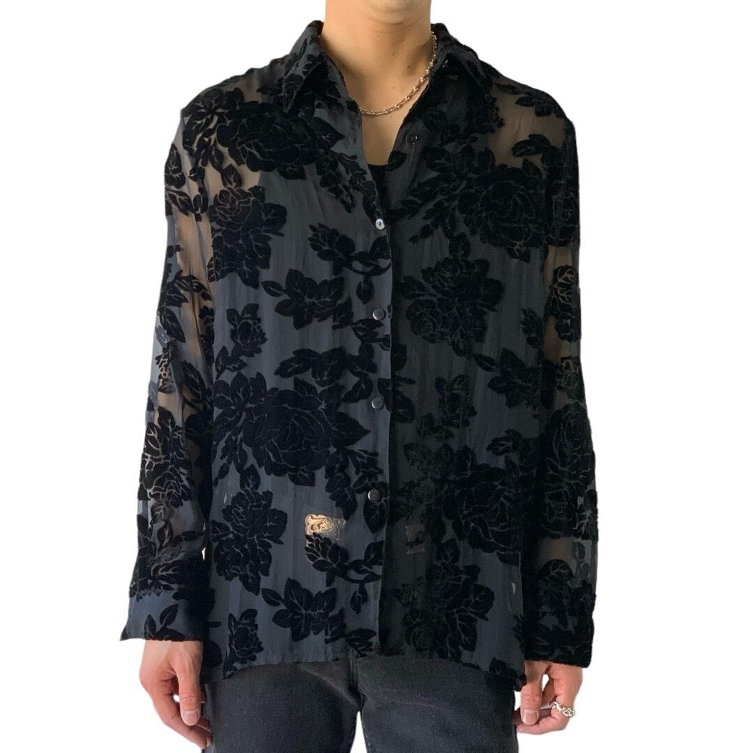 Flocky pattern sheer shirt