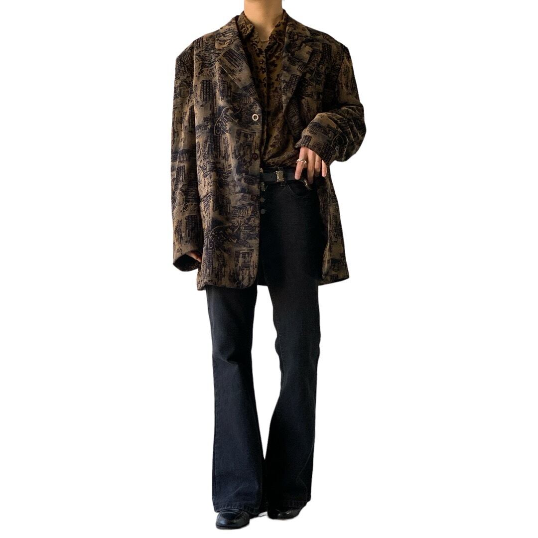 アートに落とし込んだピクチャーパターンの独特な雰囲気が抜群なデザインベルベットジャケット!!!
