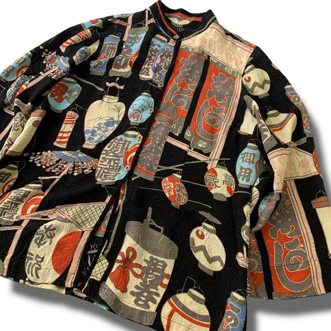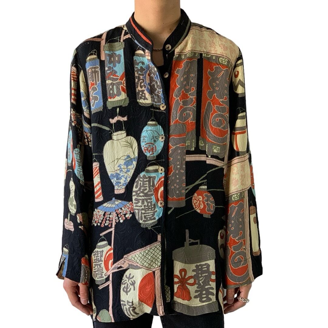 提灯モチーフの超絶ムードなデザインが目を引くバンドカラーシルクシャツ!!!