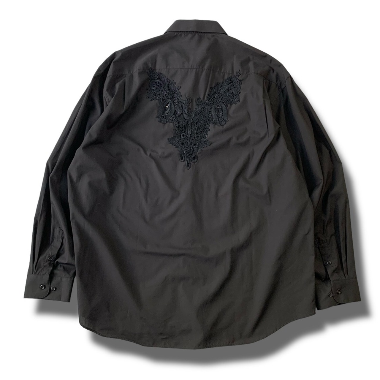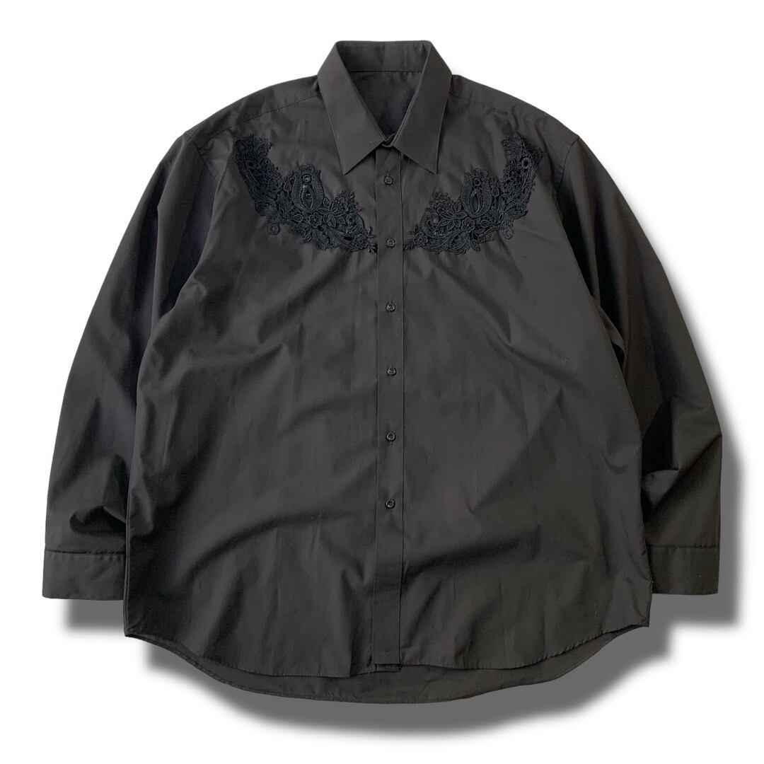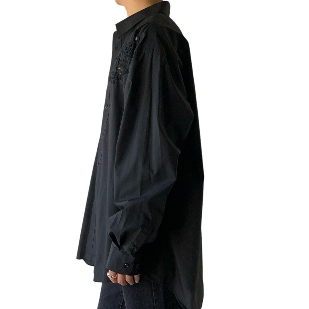 フロント胸元から背面中央部分にカットワークデザインのレース刺繍を施した珍しいオーバーなサイジングのドレスシャツ!!!
