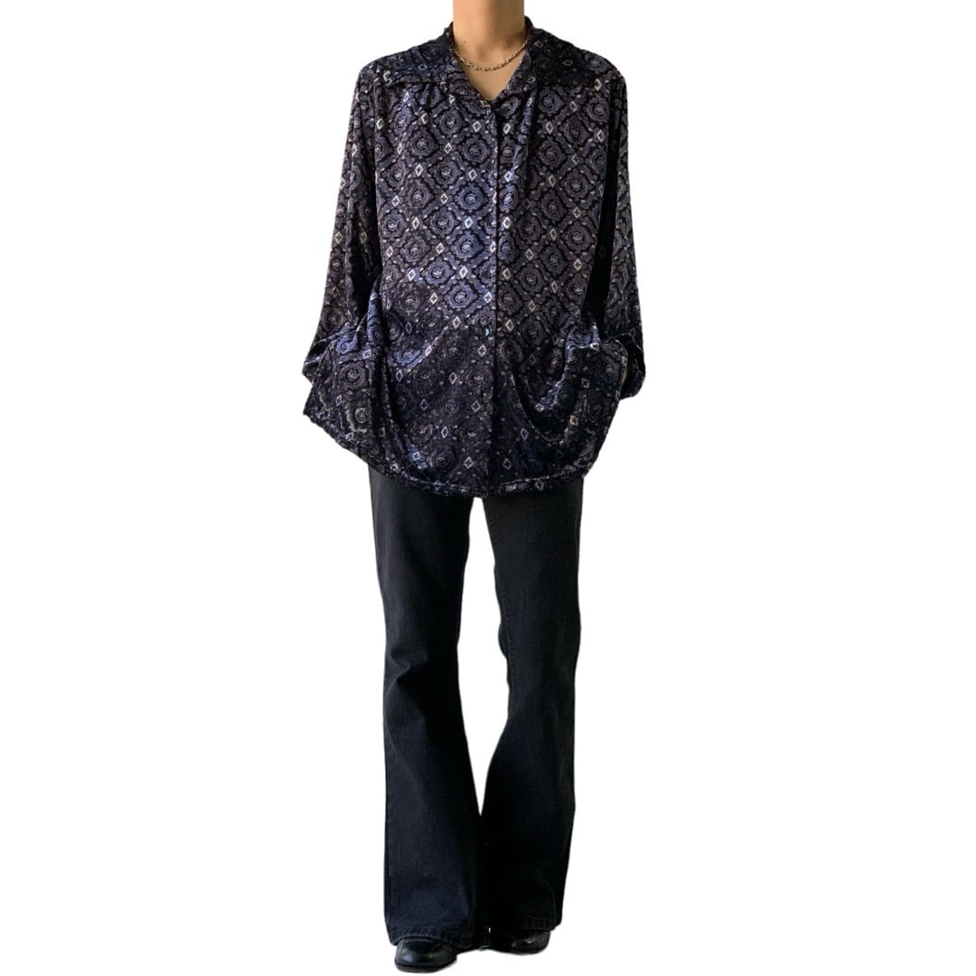 ♾NOTATIONS♾ design patterned see-through mix velours shirt size2X