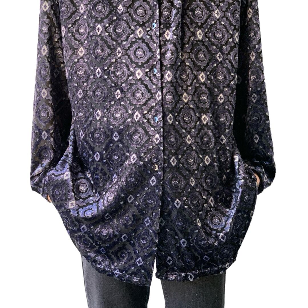 design patterned see-through mix velours shirt