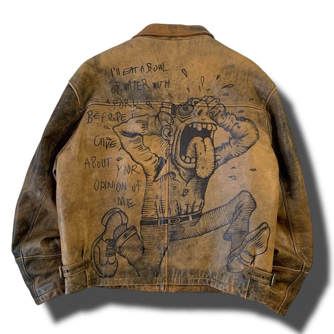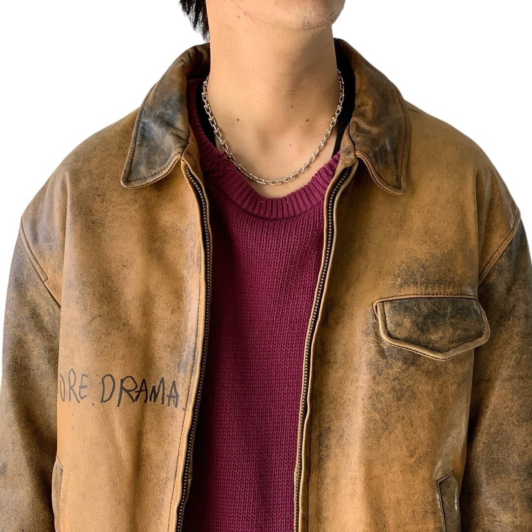 ショート丈で四角いシルエットが堪らなく、オールレザーでこの着こまれたガスガスレザーが完璧ディテール◎