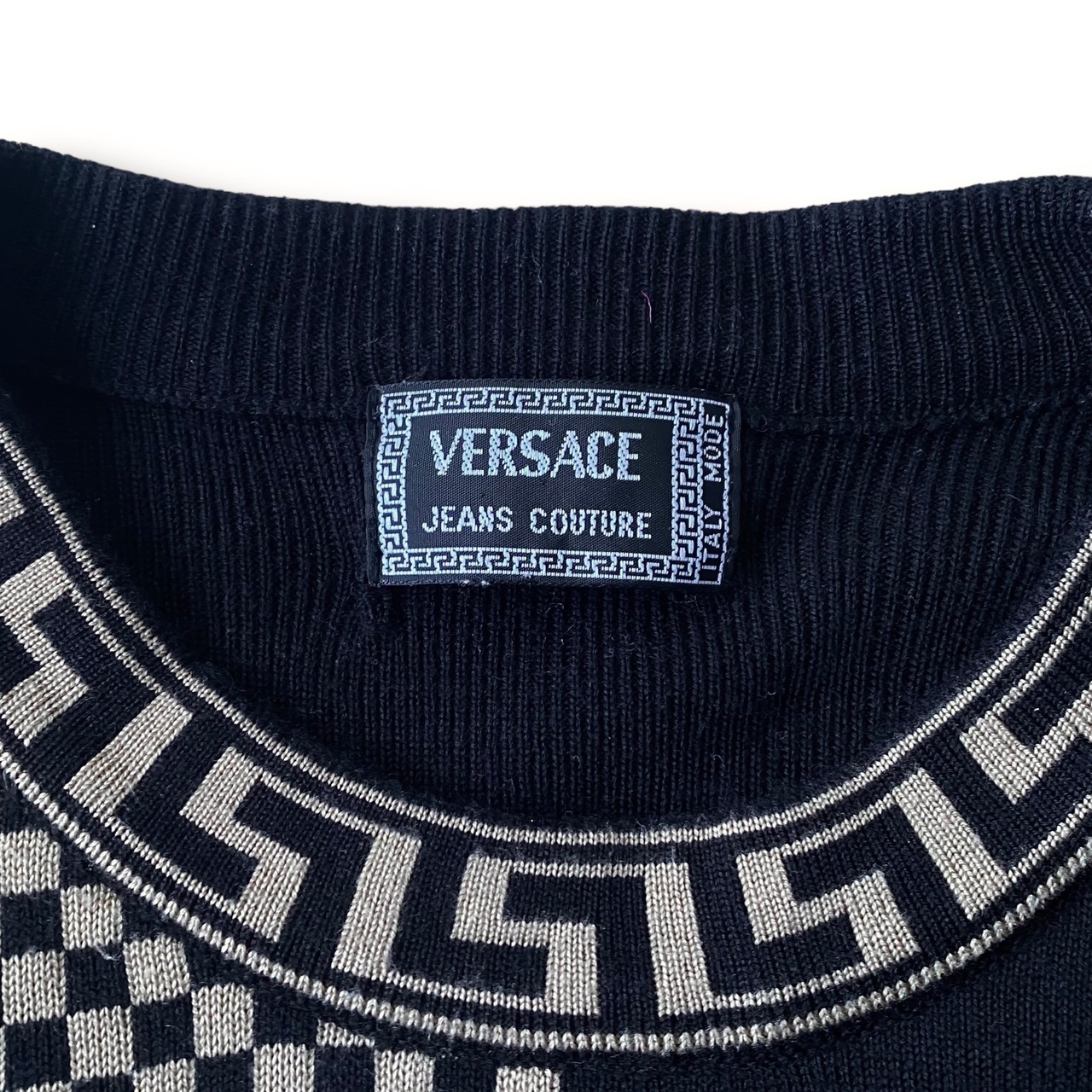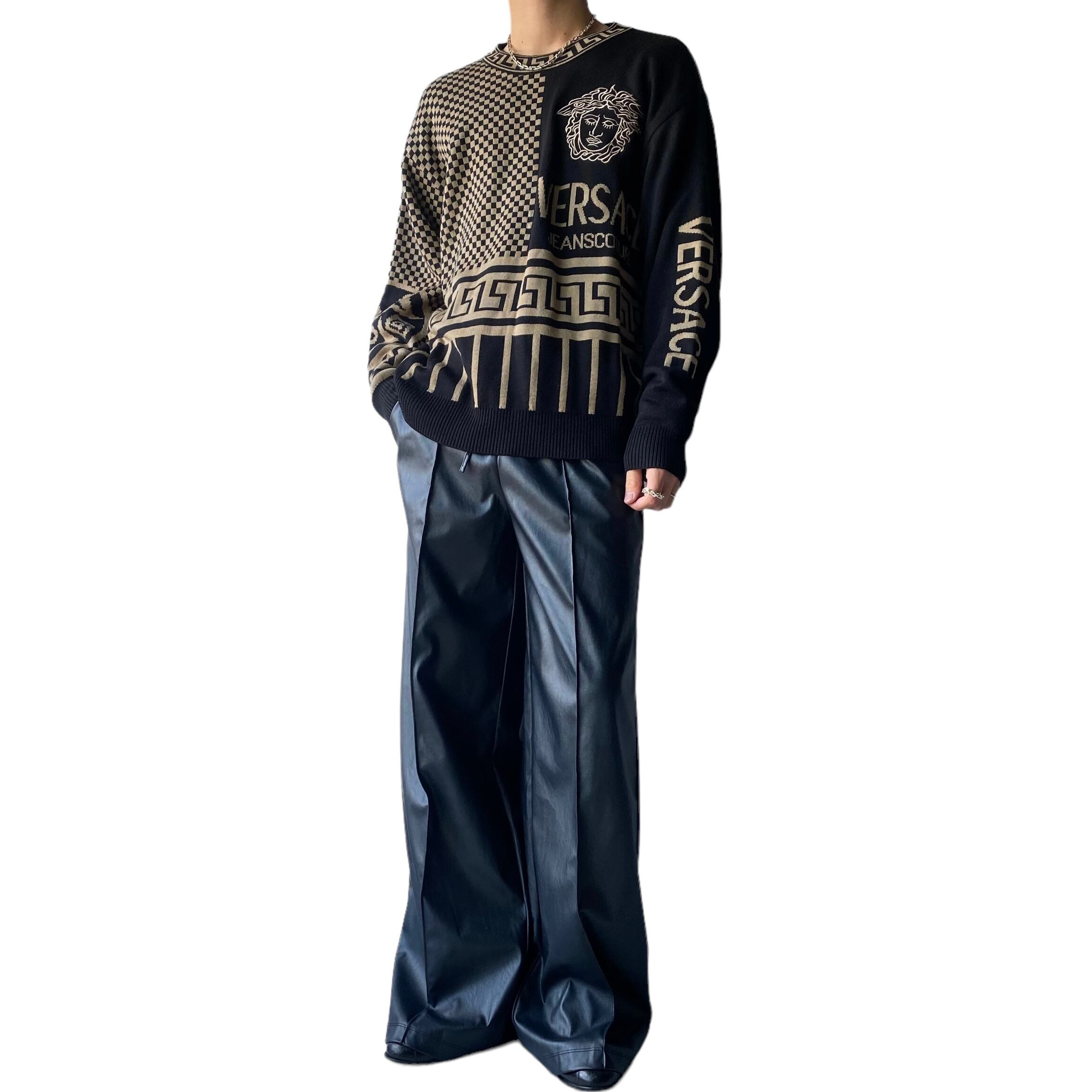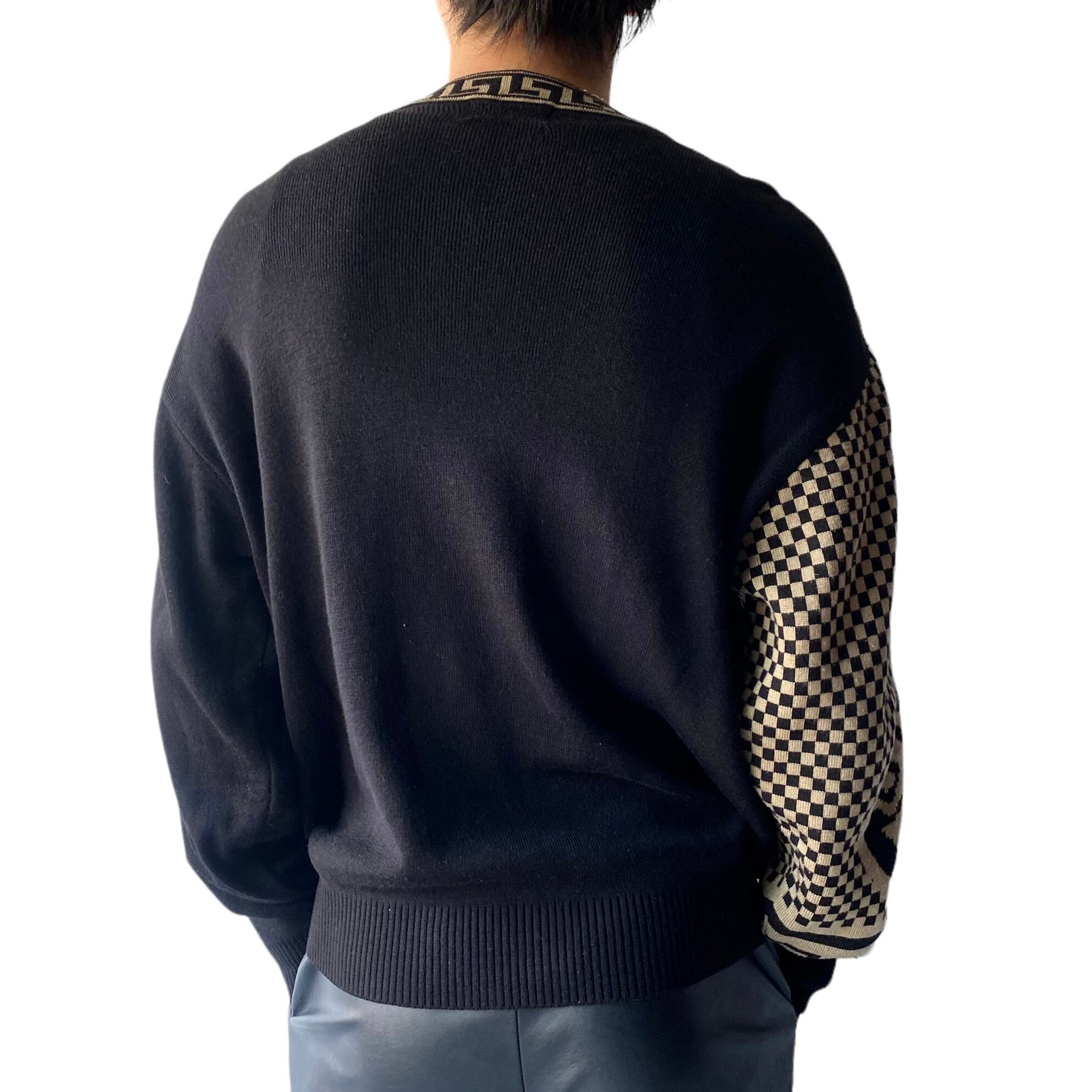 フラッグチェックをベースに胸元にはメデューサ刺繍、ロゴ、リブにグレカのラインが入った究極デザインニット‼️