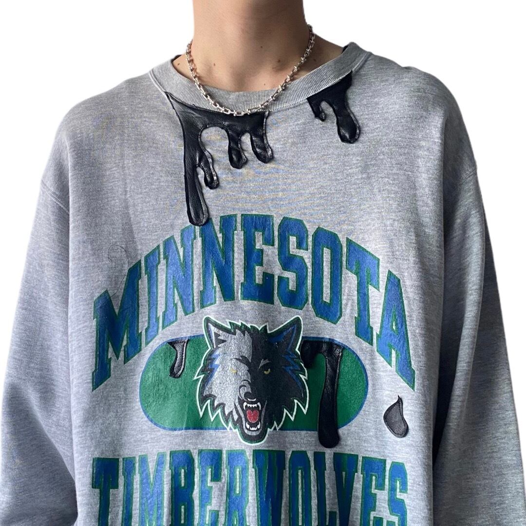 古着のスウェットらしさを感じる事のできるこのプリントにこのレザーのカスタムリメイクでオリジナリティ溢れるニュアンスを手にする事ができちゃいます◎