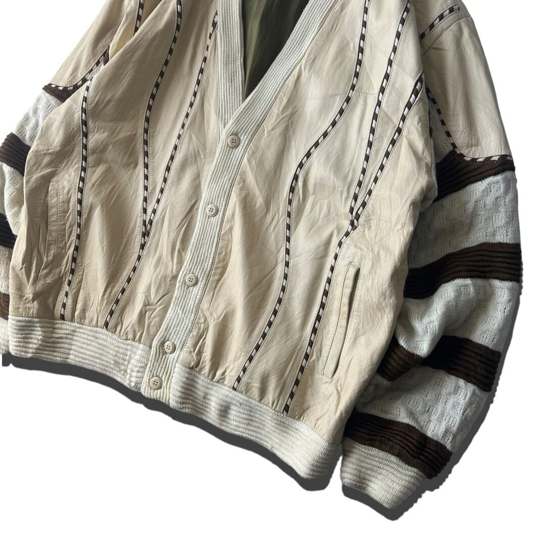 【SAXONY COLLECTION】Real Leather combination 3D Knit Cardigan blouson