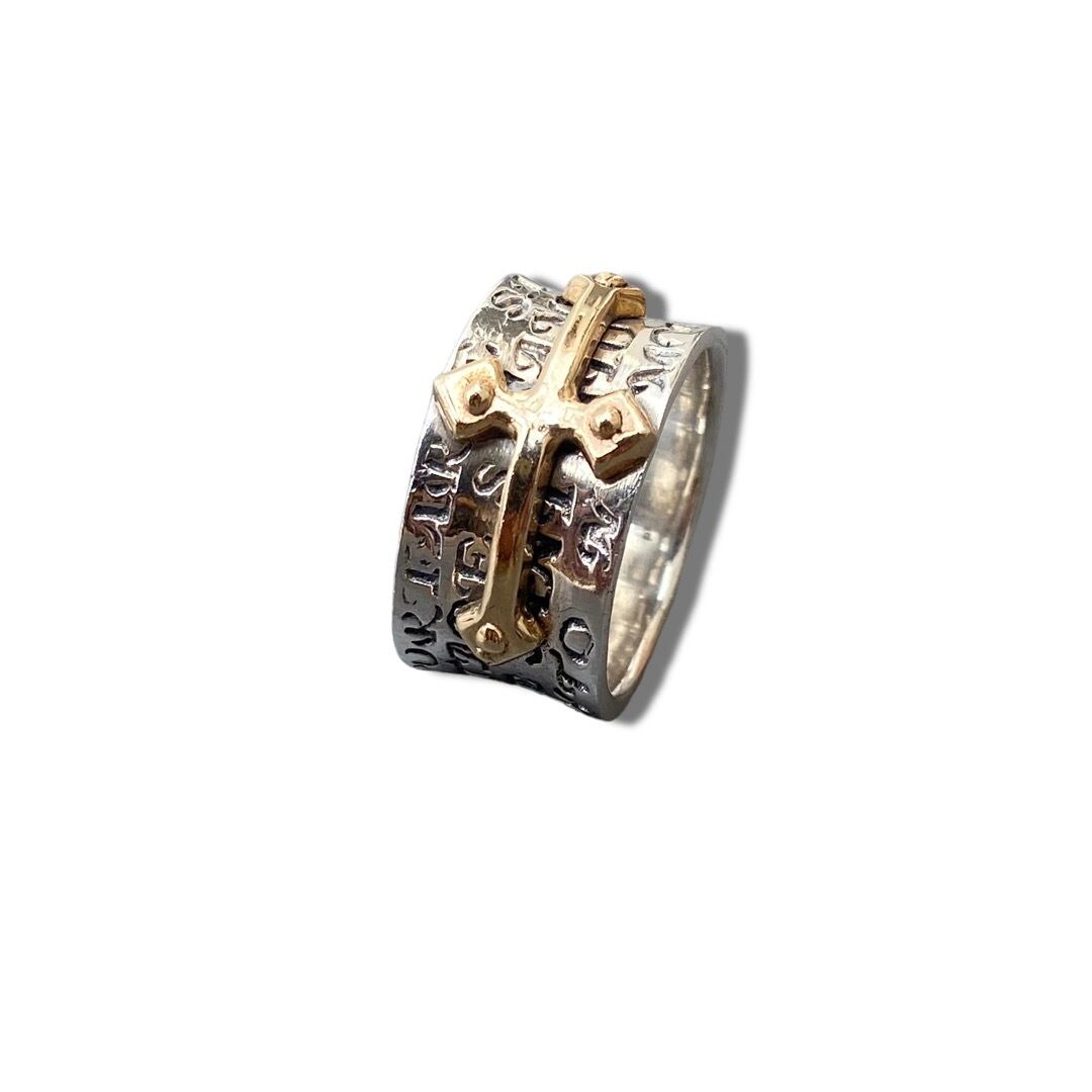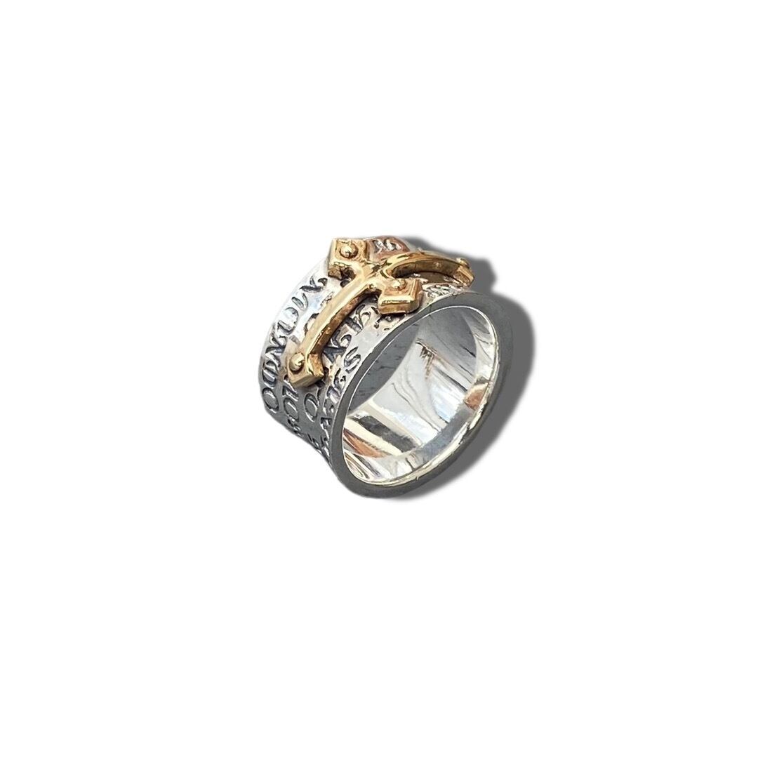 ♾vintage silver jewelry♾ cross motif gold combination design ring size17号 sv925