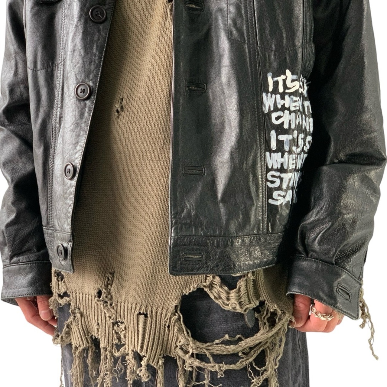 Euro VINTAGE ♾ VERA PELLE ♾ forth detail hand painted leather jacket MADE IN ITALY