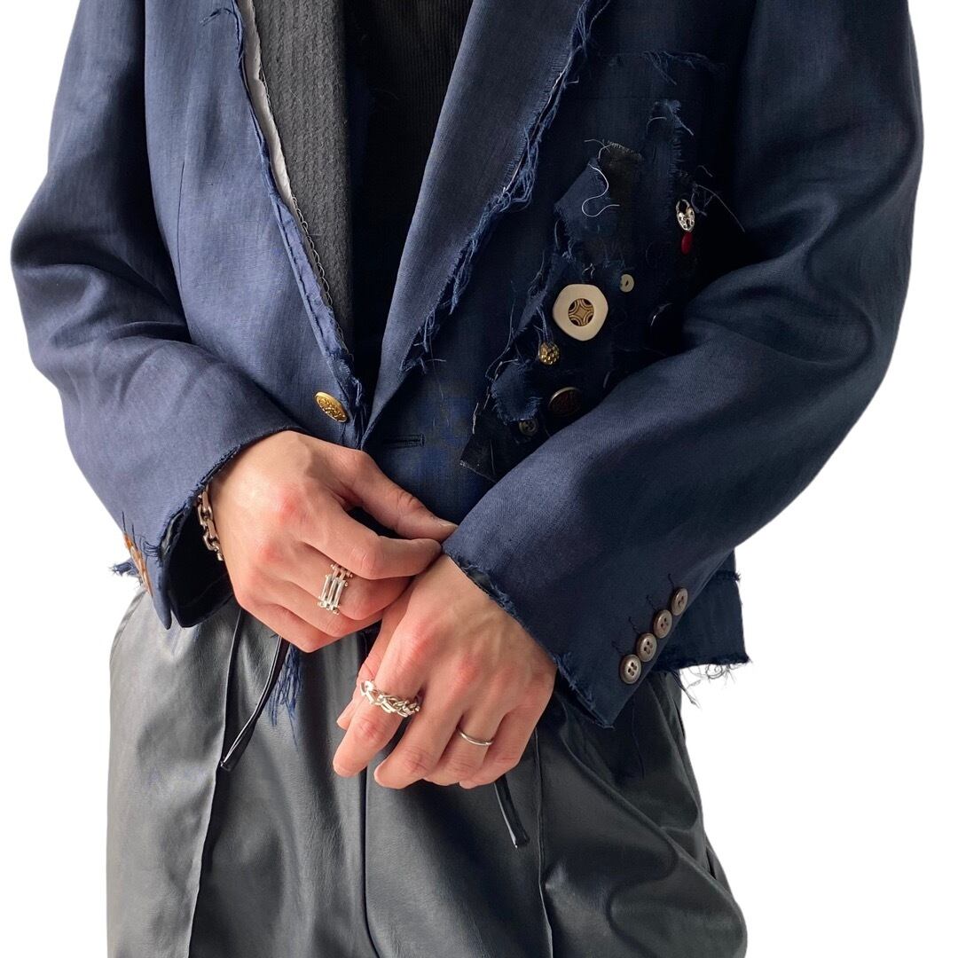 ひっぺがされたラペルやボタンパッチのオンリーなカスタムデザインがスタイリングに映え❤︎