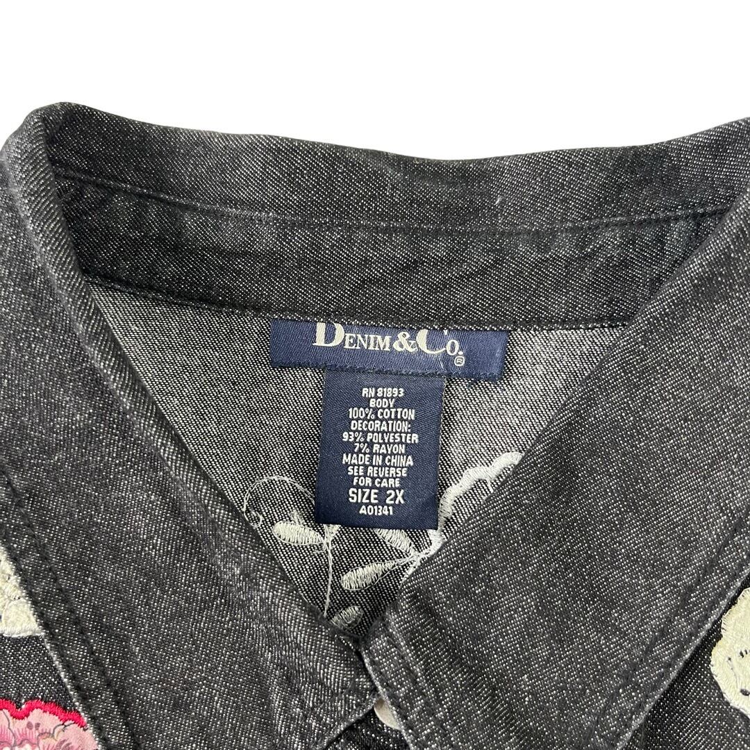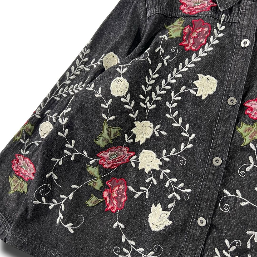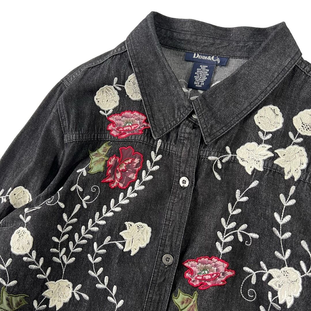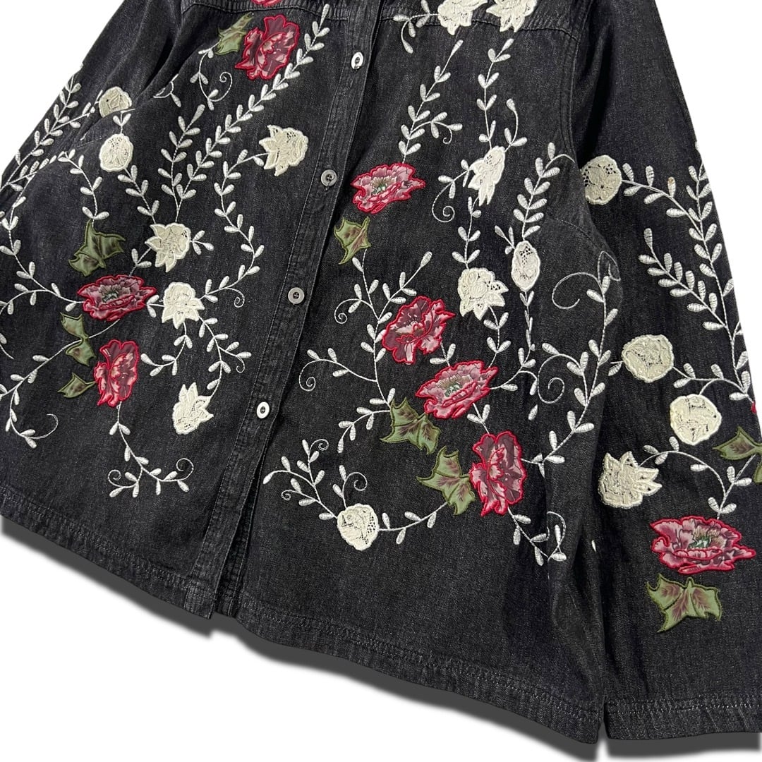 【DENIM&CO.】Flower Embroidery Pattern Decoration Denim Jacket