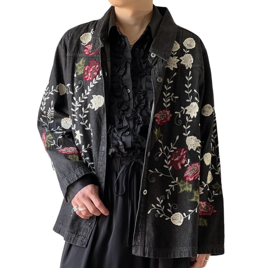 ブラックデニムに刺繍は極希少。360℃お洒落。