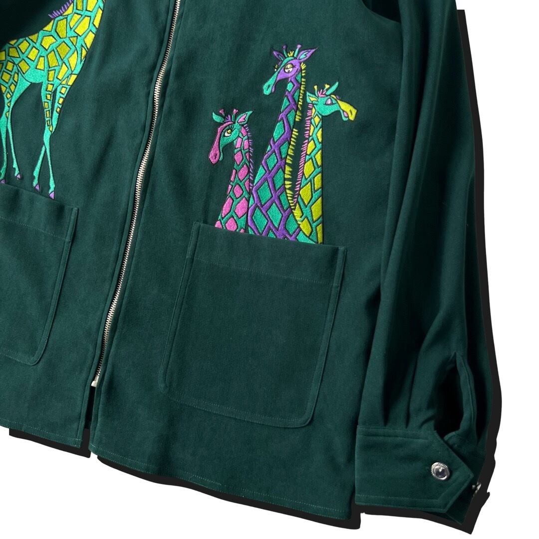 【Bob Mackie】 "Embroidery Giraffe Design" Smooth Drizzler Jacket