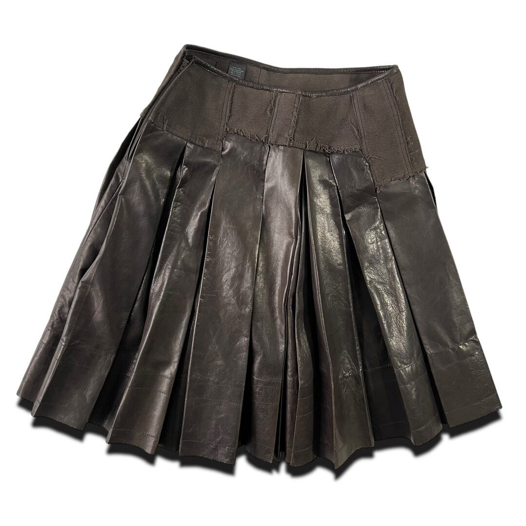【DONNA KARAN】 ''Italian Deer Skin Leather" Design Pleats Skirt -MADE IN ITALY-