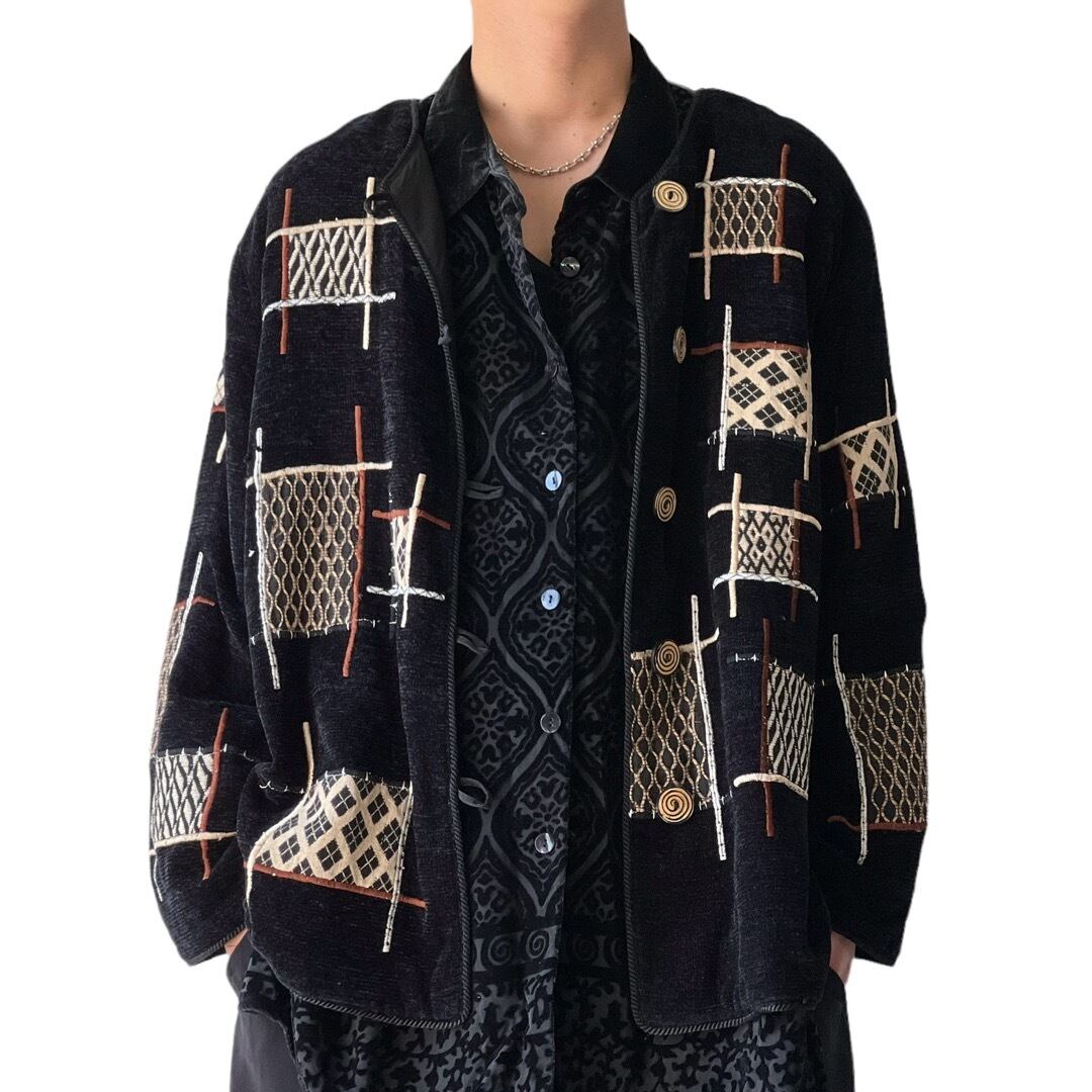 滑らかなベロア生地に、刺繍バランスが素晴らしいノーカラージャケット‼️
