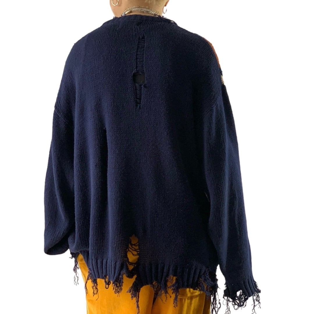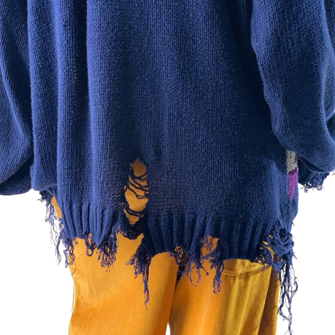 ♾ETCHINGS♾ multi color crushed design over knit sizeL