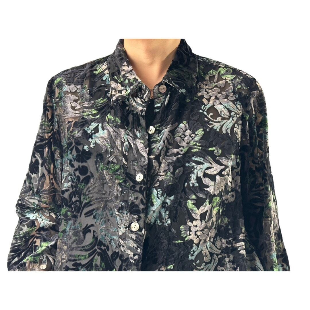 【j.h.collection】 Floral Pattern Rayon Velours sheer Design shirt