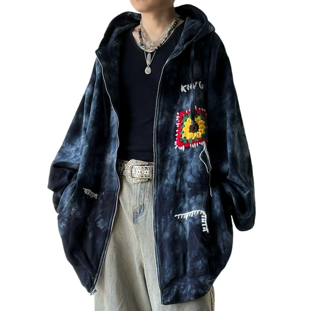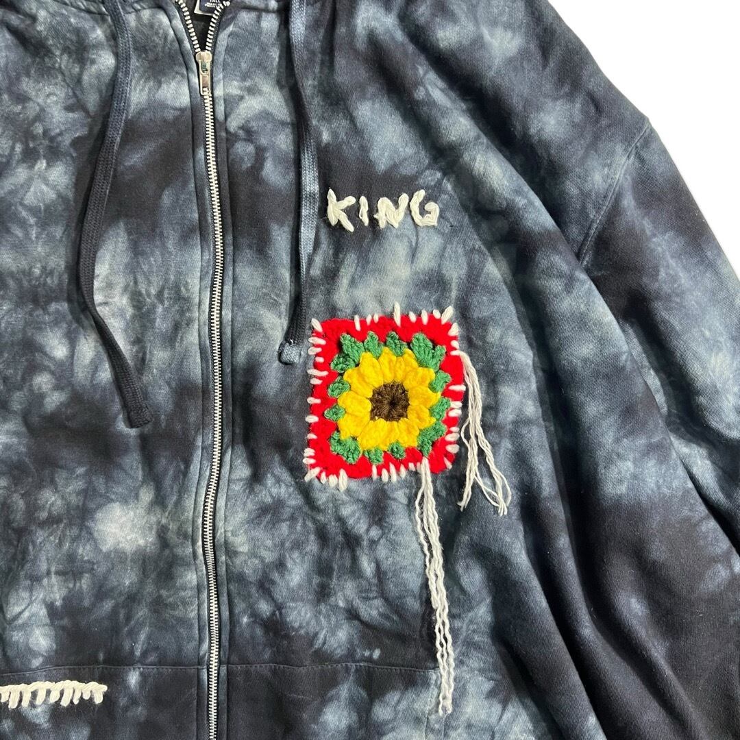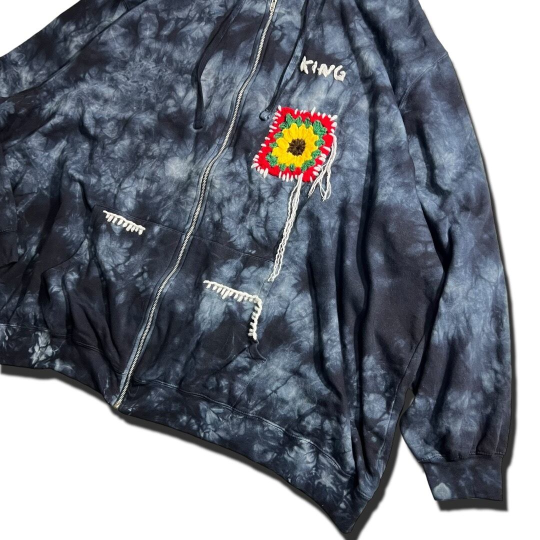 【KINGSIZE】 8XL Special Oversized Flower Motif Hand Stitch Design ZipUp Hoodie