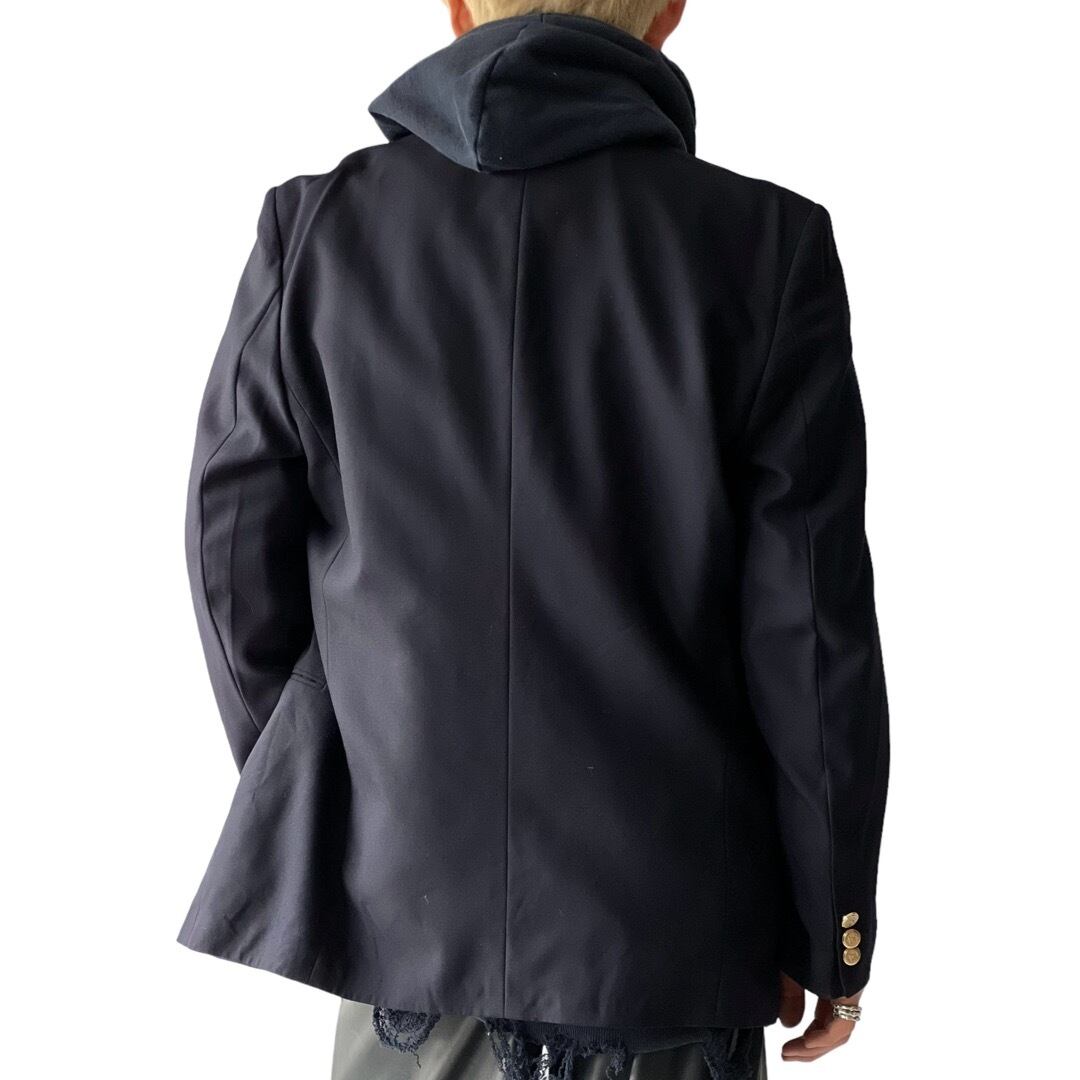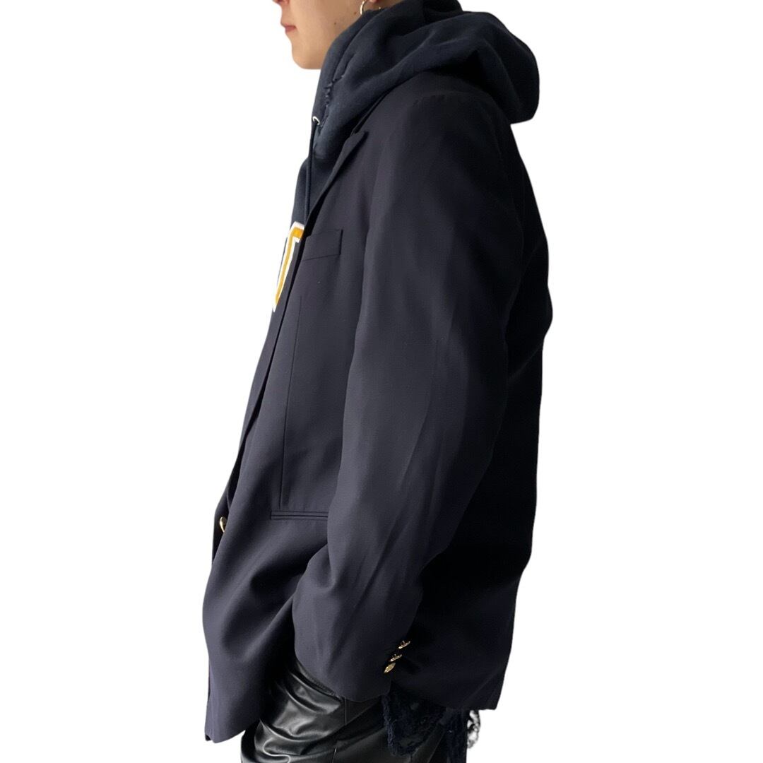 人気のネイビーカラーに金ボタンが印象的なダブルテーラードジャケット。