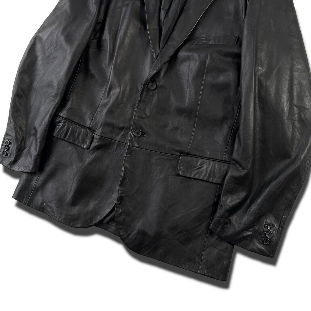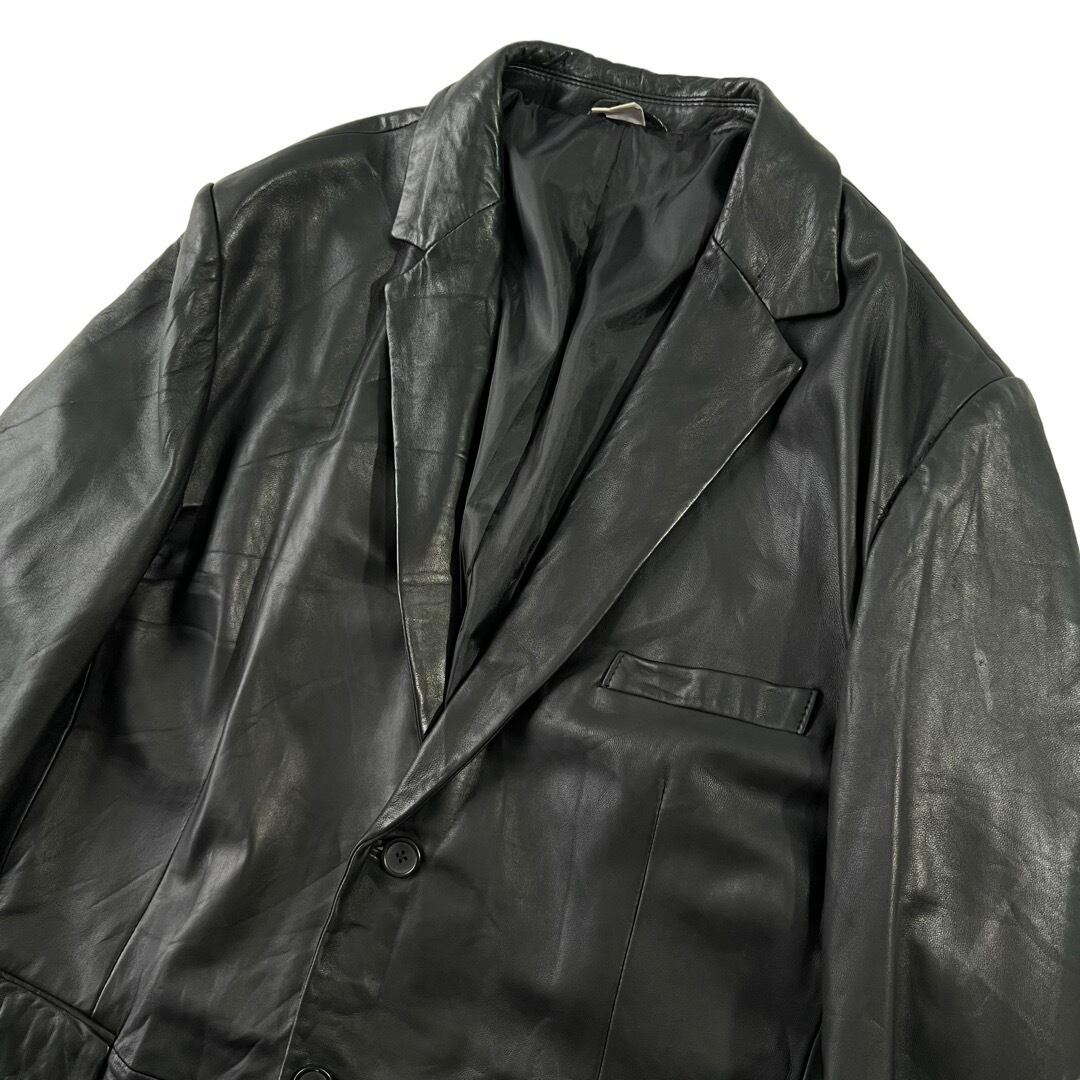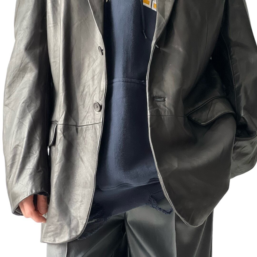 ブラックのレザーでオーバーサイズのテーラードジャケット。