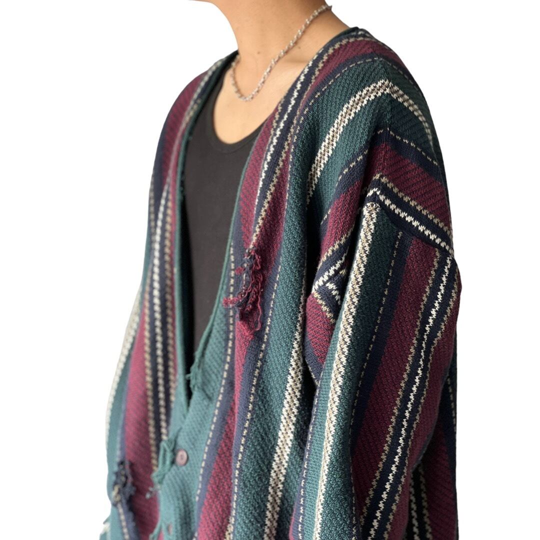 "Crush Design" Stripe pattern Cotton knit Cardigan / MADE IN U.S.A.