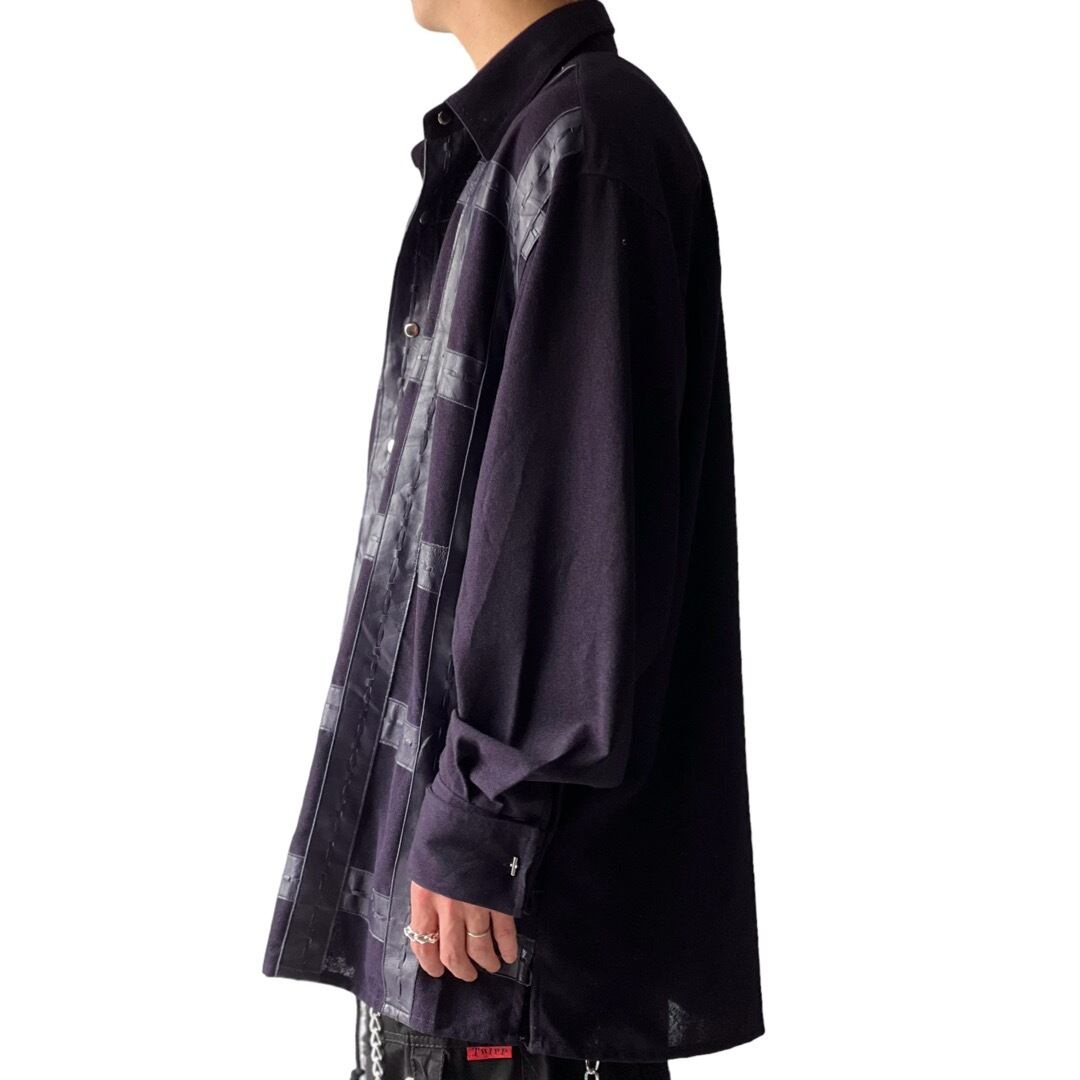 【begara collezioni】Leather Swiching Line pattern Design shirt