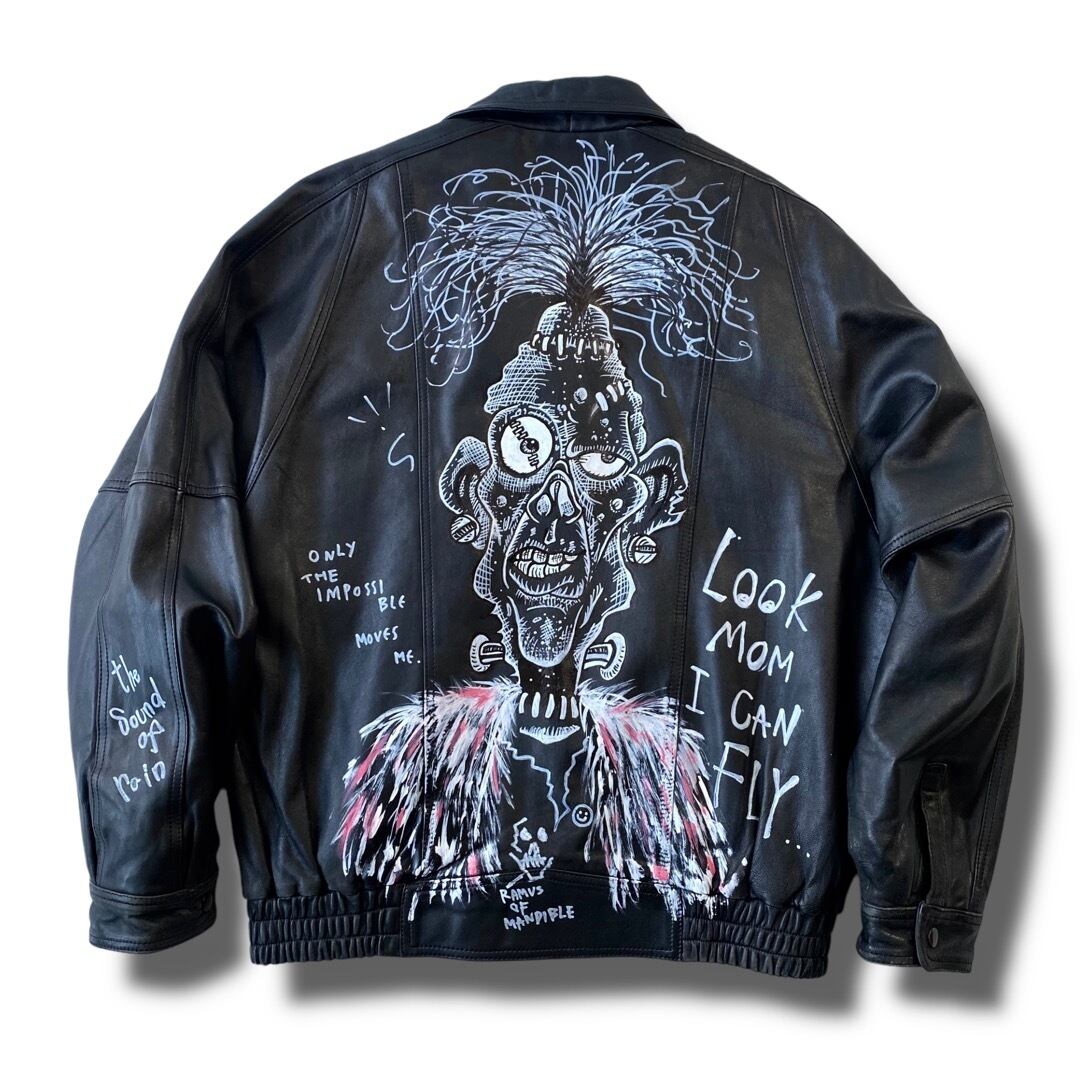 上質なポテンシャルの高いレザーを使用した抜群のアイテムにオリジナリティ溢れるフランケン?モチーフのハンドペイントを施した存在感ある仕上がりに◎