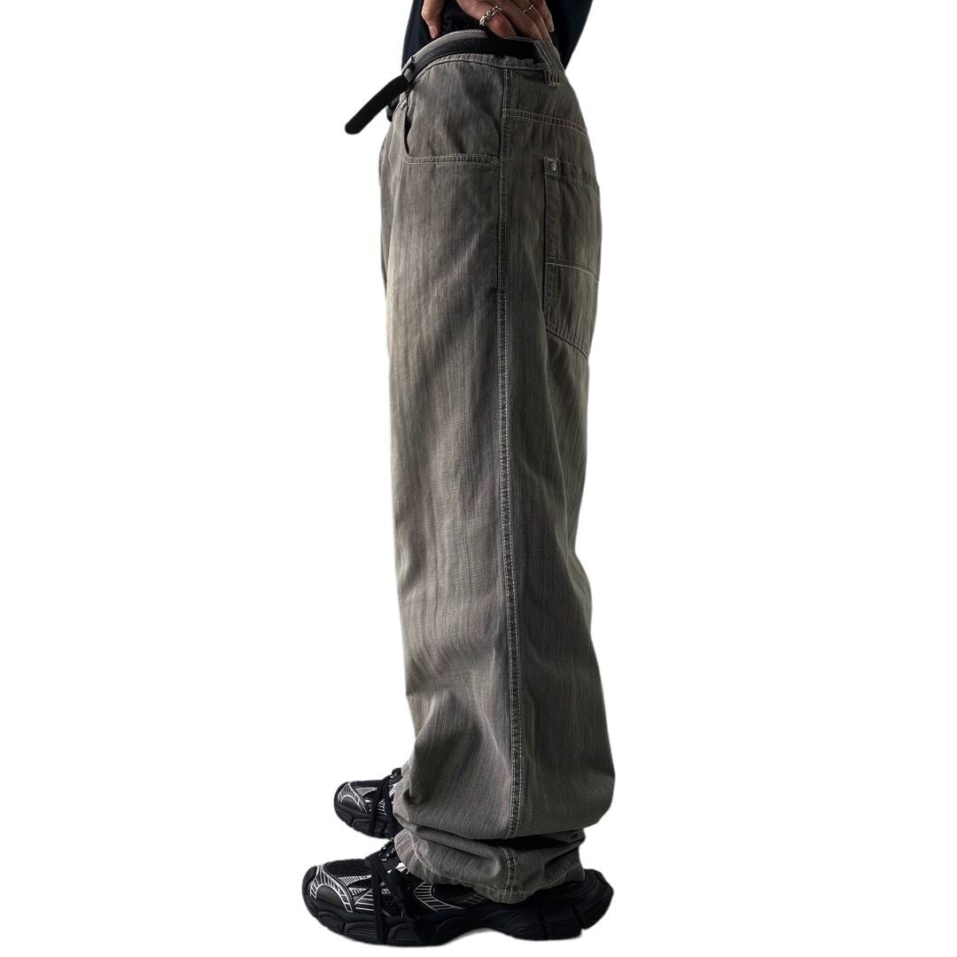 程よく緩いシルエットと、ハイパーフェードしたようなホワイト味のあるグレーよりな色味が抜群にクールなデザインルーズフィットデニム。