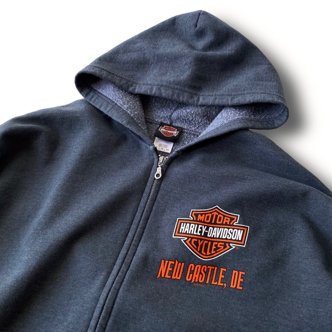 背面のハーレーらしさ全開なスカルロゴプリントが魅力のデザインジップフーディ❗️