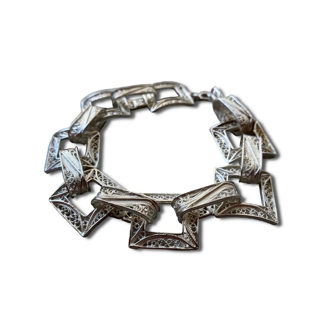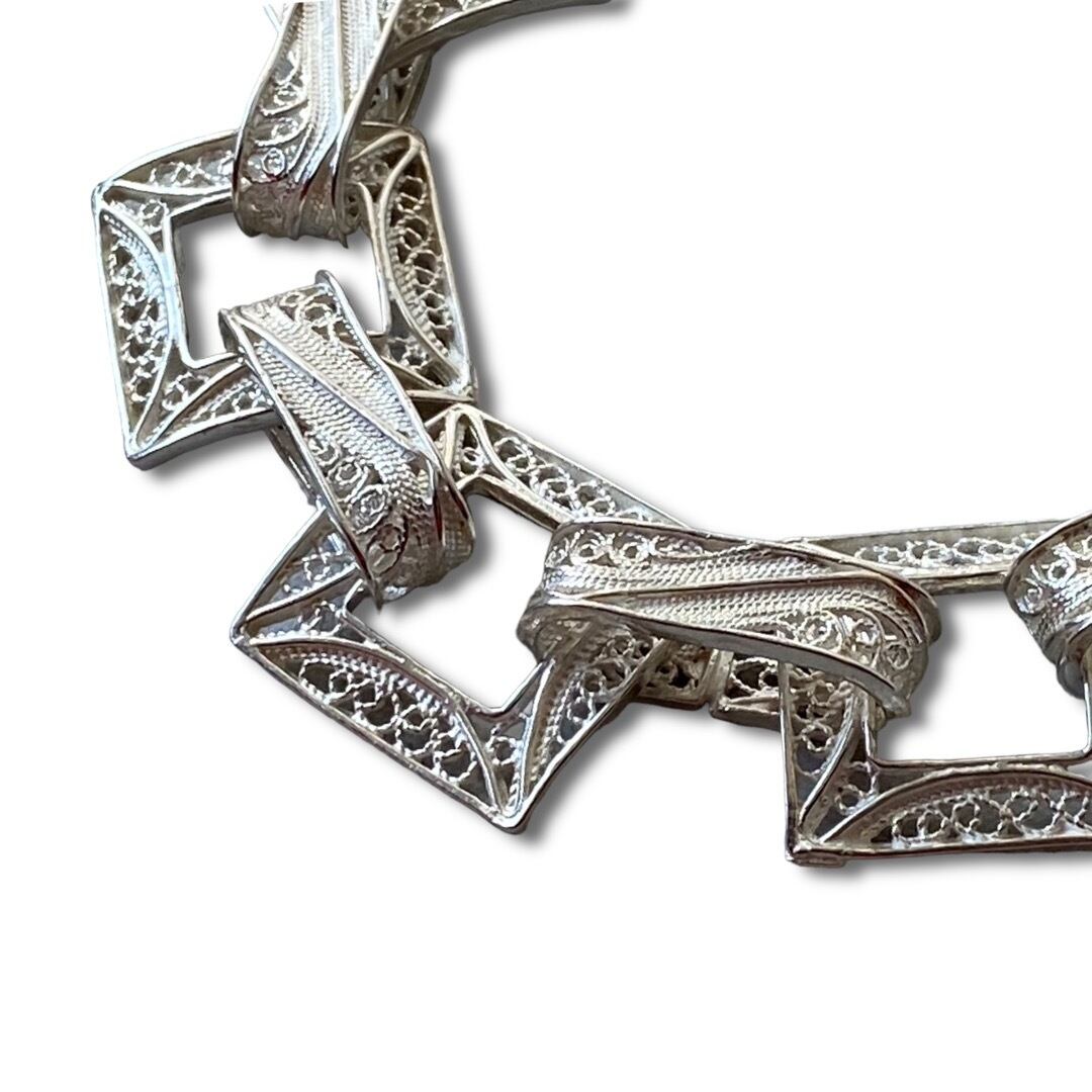 ♾Vintage Silver Jewelry♾ Design square link bracelet -sv950-
