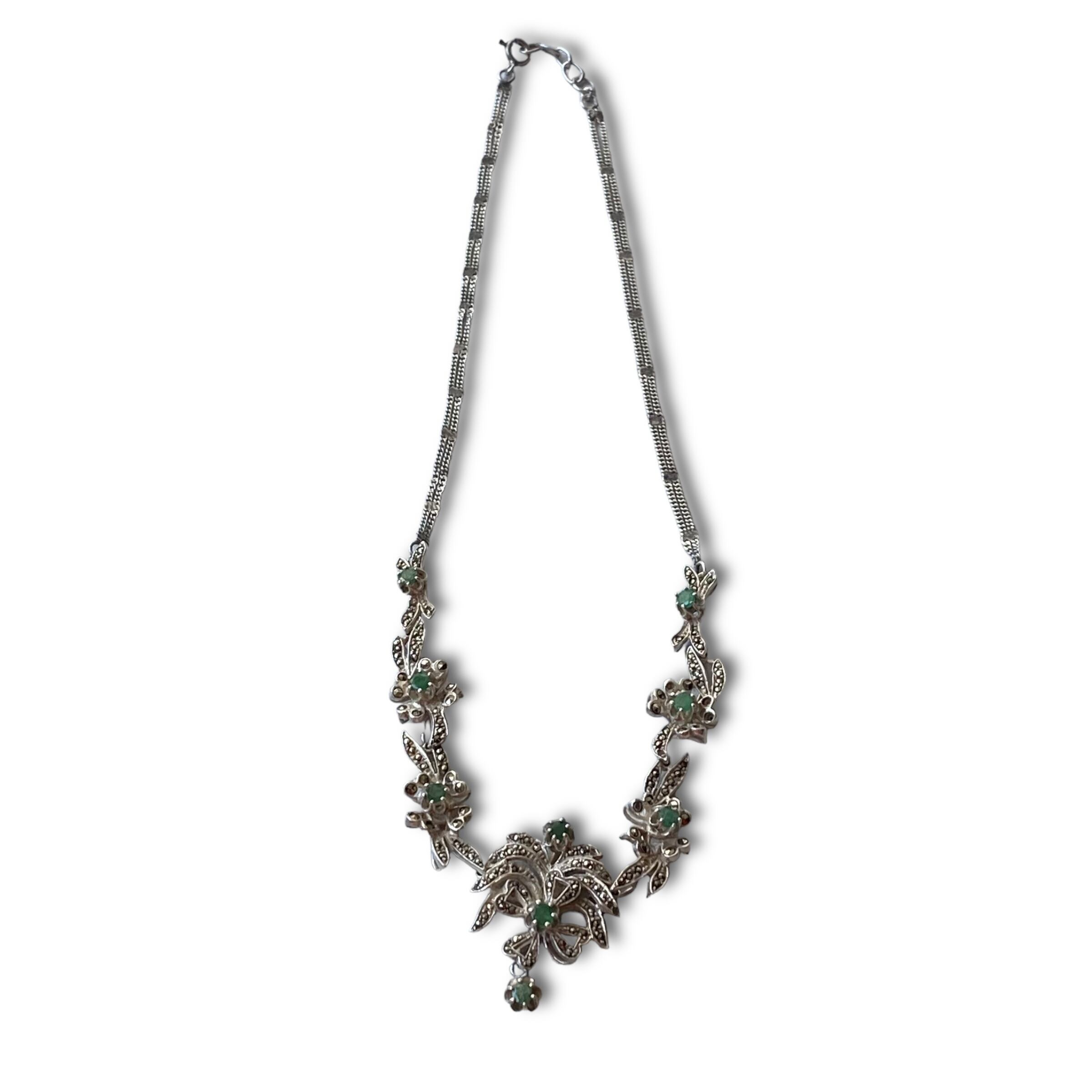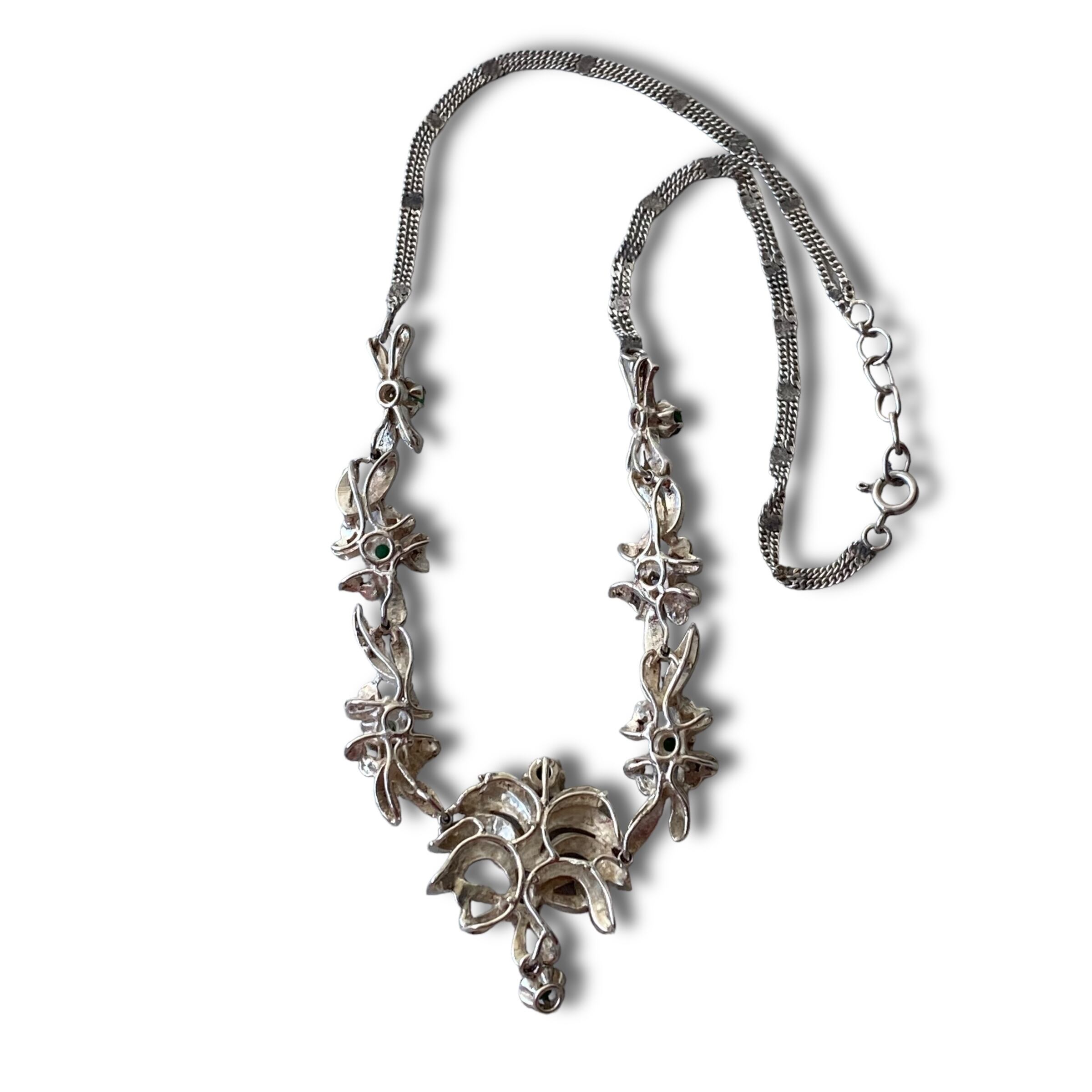 ♾Vintage Silver Jewelry♾ Stone combination design cz necklace -sv925-