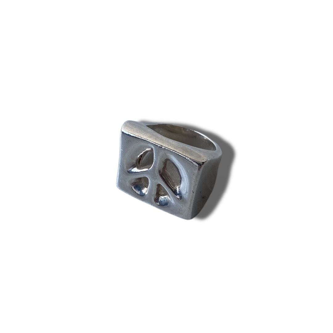 ♾vintage silver jewelry♾ peace mark motif square design ring size10.5号 sv925