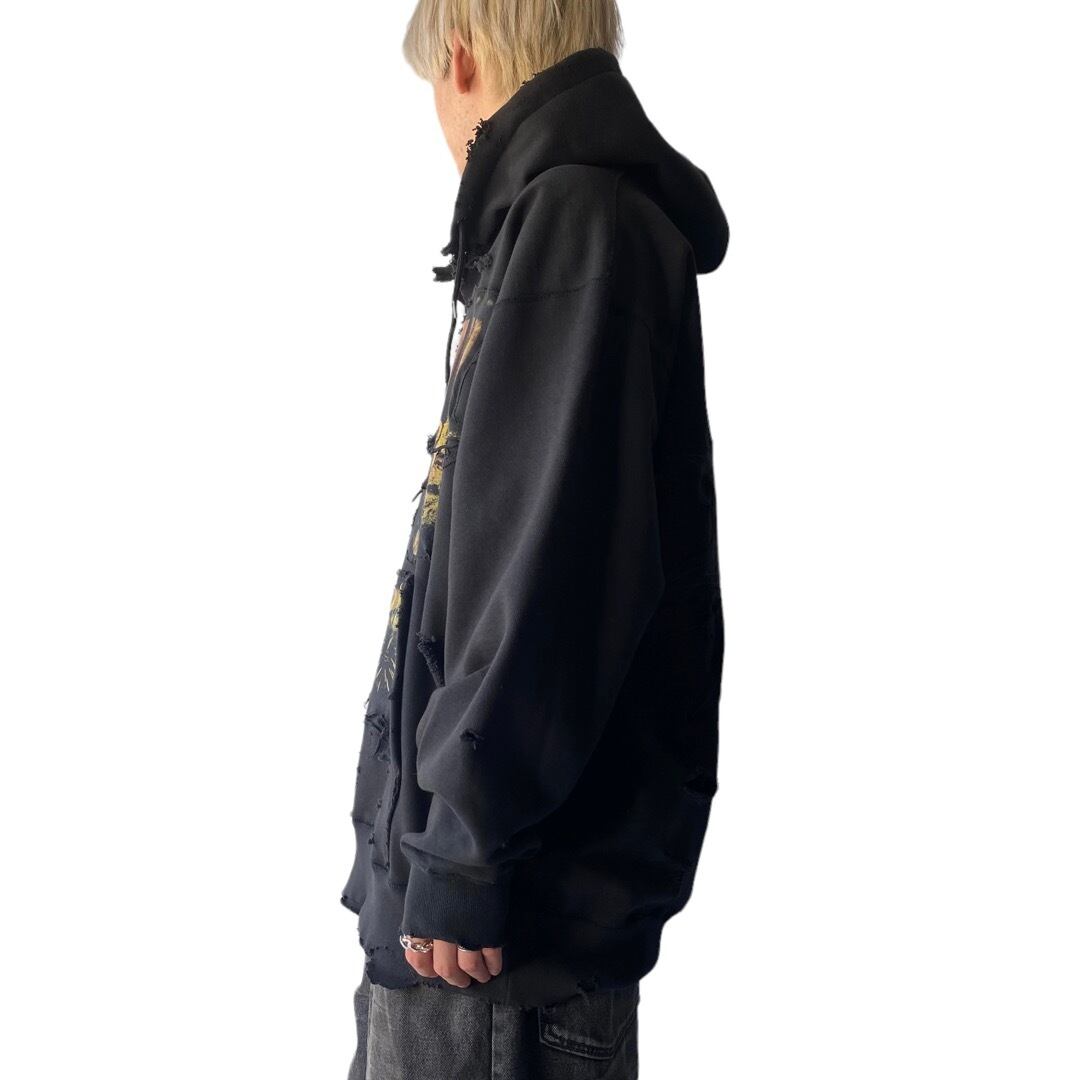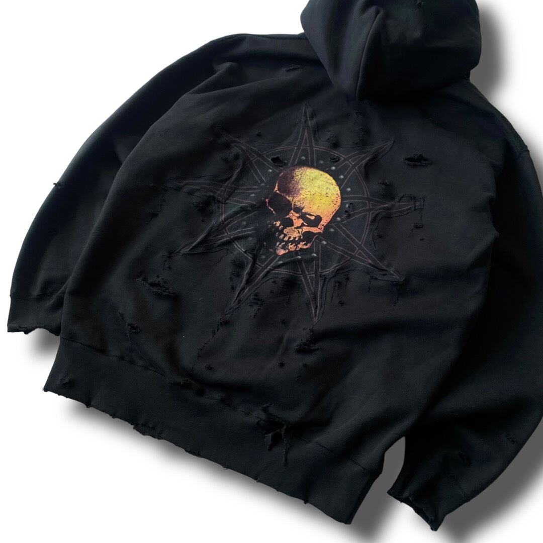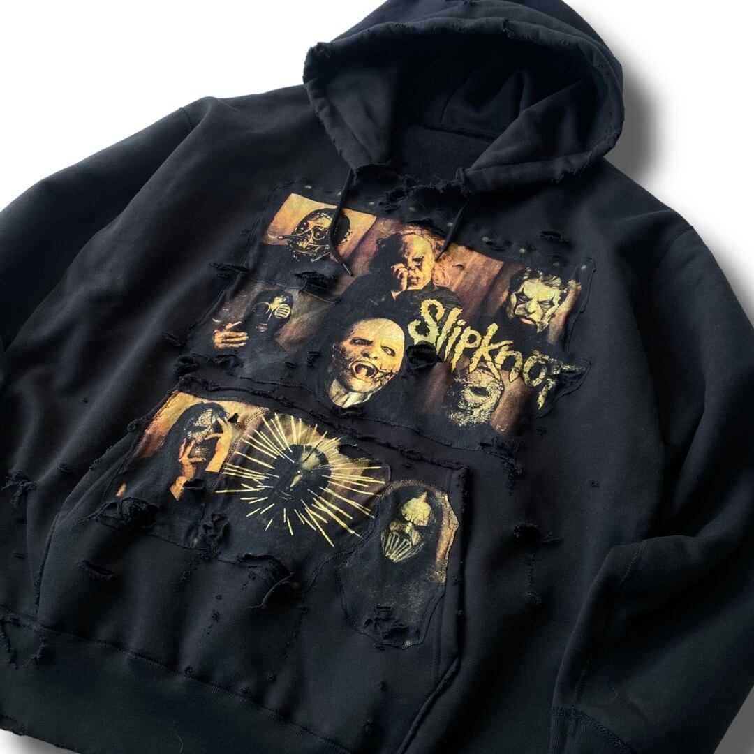 雰囲気抜群でスリップノットのデザインパッチを両面に施しダメージを加えたデザインフーディ‼︎‼︎