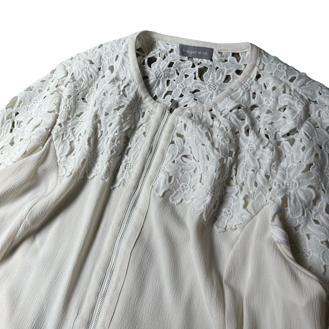 【bagatelle】 Swiching Lace pattern Collarless Design Zipup Jacket