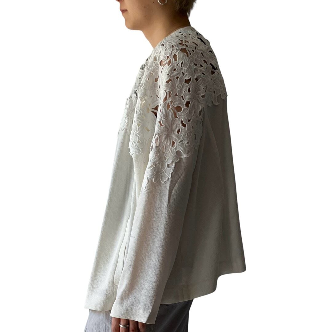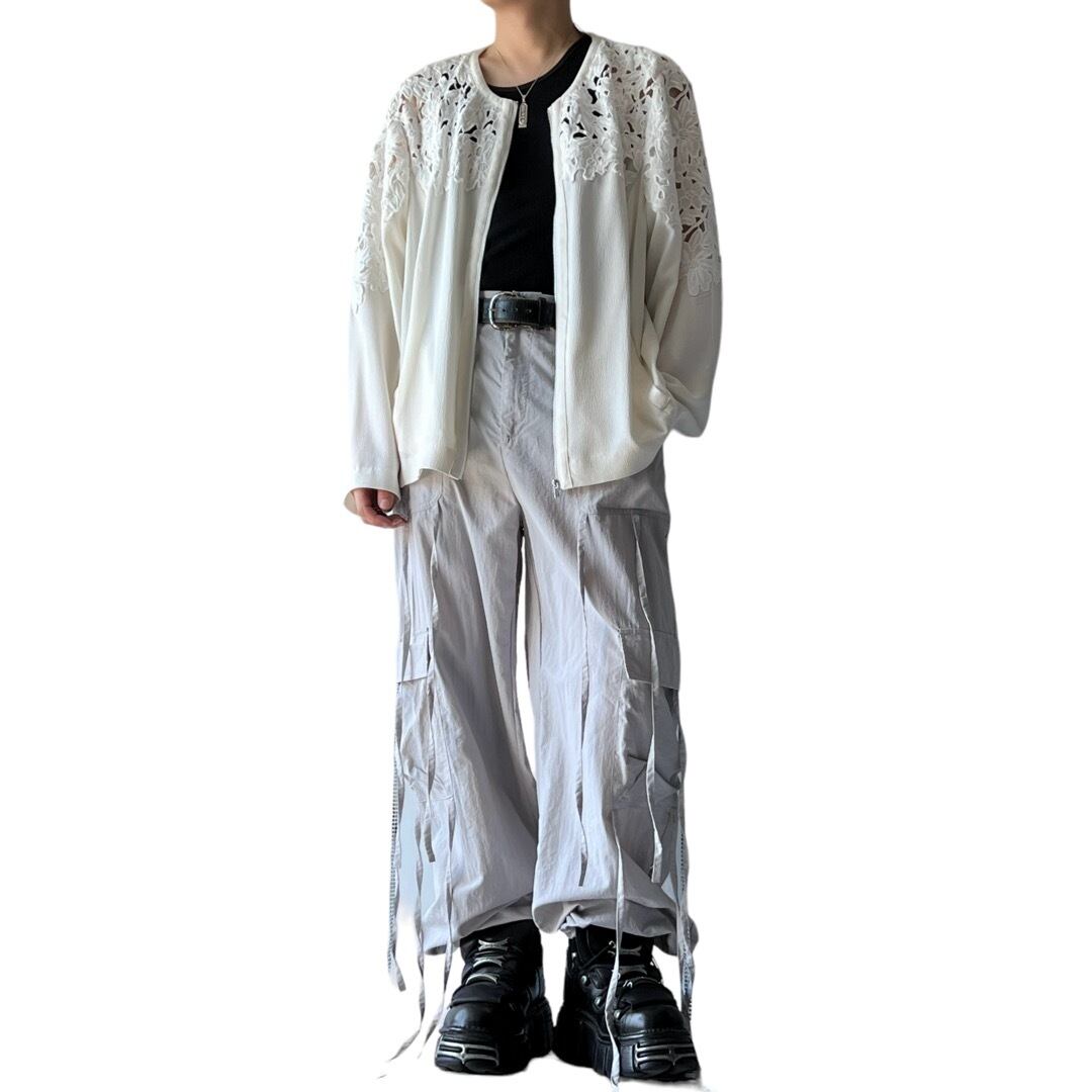 大胆に胸元から背面、袖部分がノレース切り替えになったデザインジャケット!!!! デザイン古着の正に真骨頂!!!!