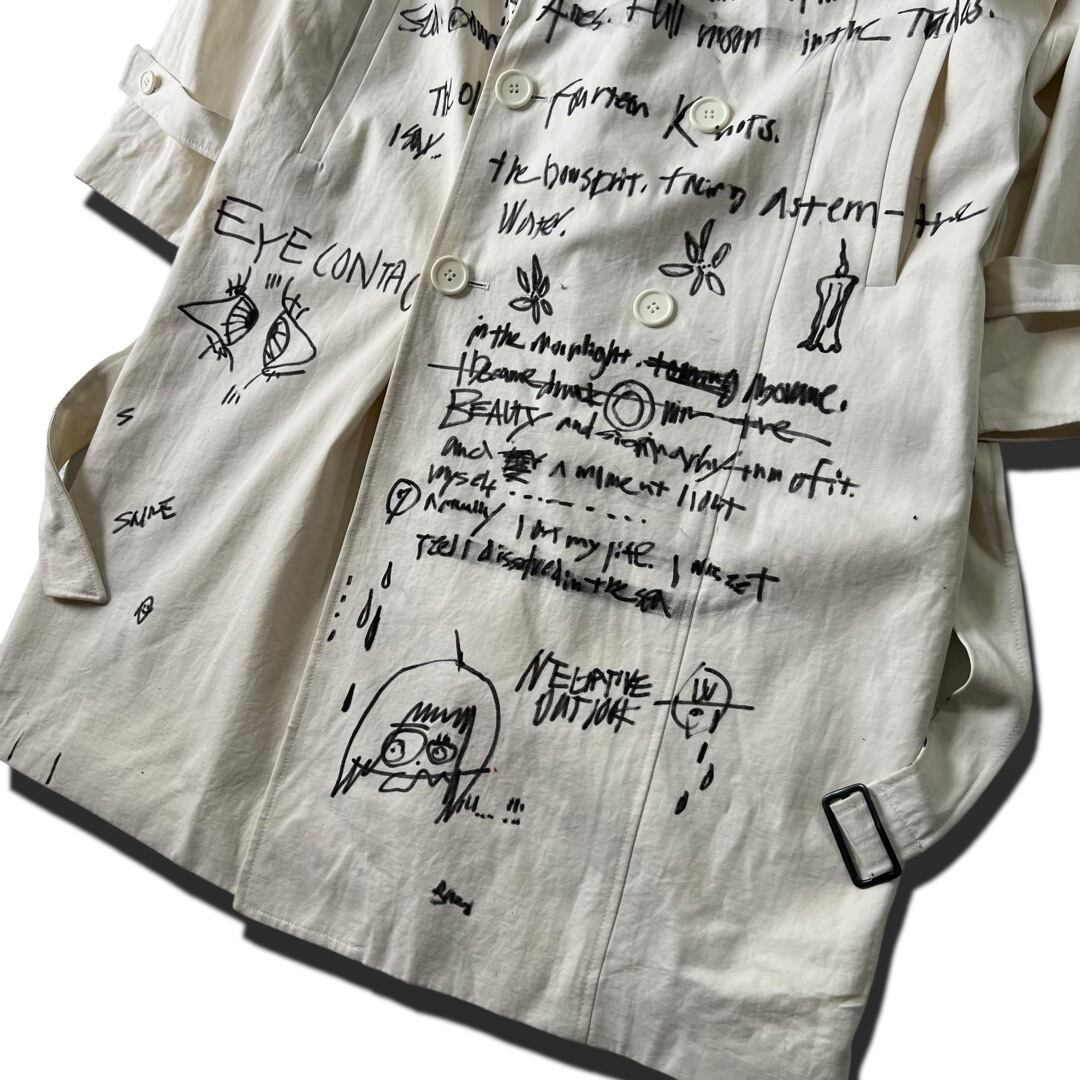 【ZEIDLER&ZEIDLER】"Hand Message pattern" Memorial Design Trench Double Long Coat