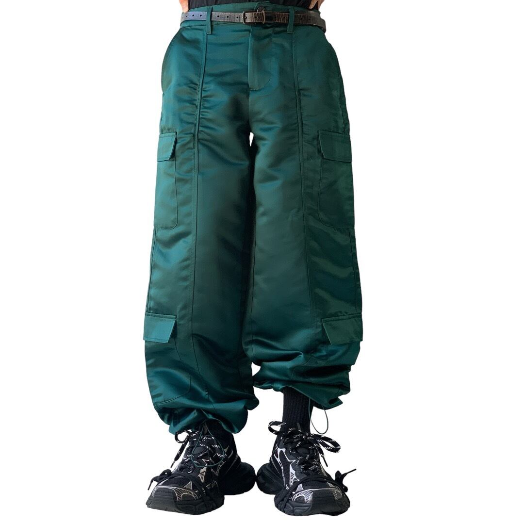 光沢のあるグリーンカラーが特徴的でWポケットのカーゴディテールがパーフェクトなオシャレテックパンツ!!