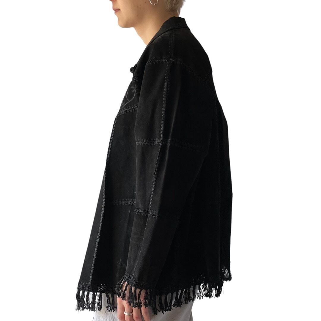 【dressbarn】 LEATHER Crochet Fringe Design Panel Jacket