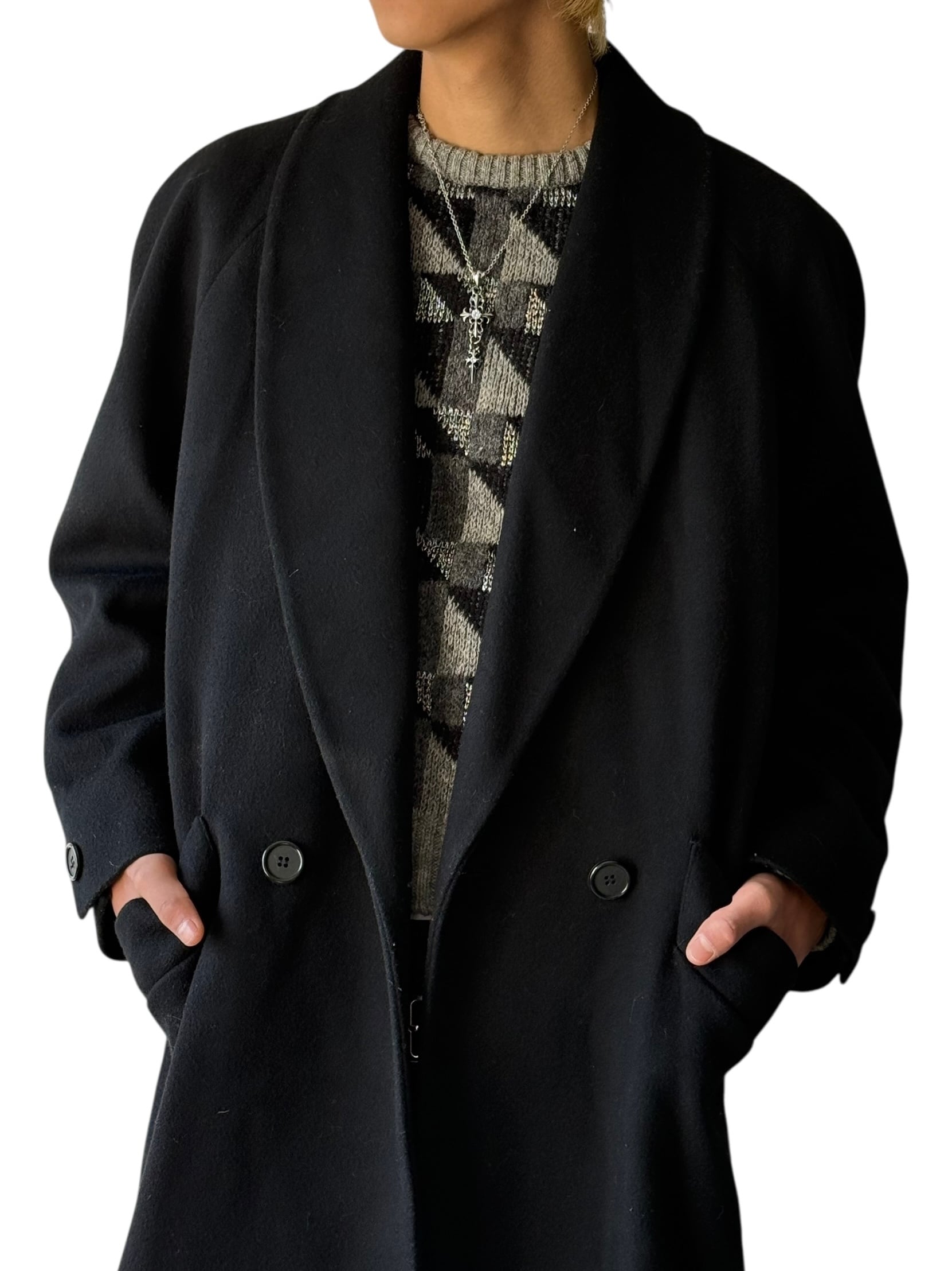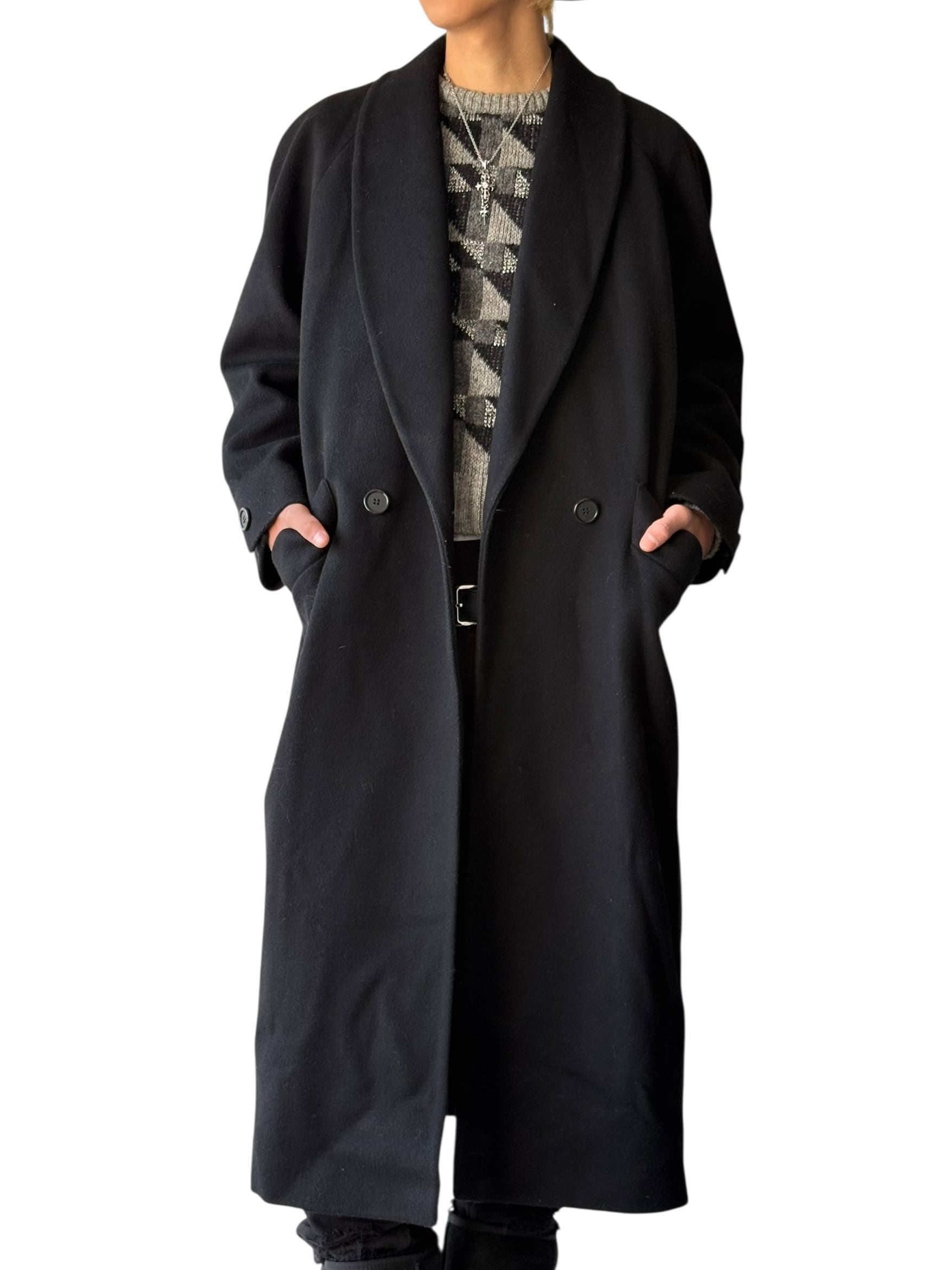 【JONES NEW YORK】-MADE IN U.S.A.- "100% PURE WOOL" Shawl Collar Wool Long Coat