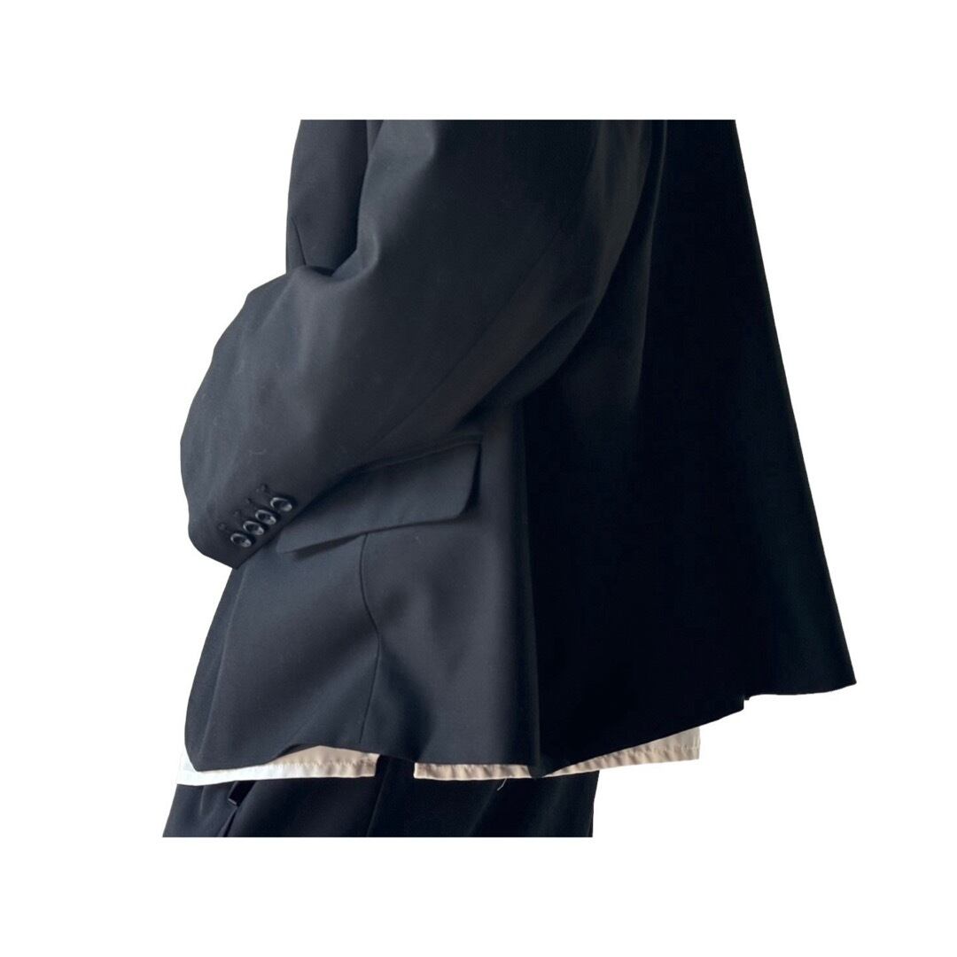 シングルなのにピークドラペルで剣先たってたり、袖口のカブスボタンが外せたりと通常のジャケットには珍しいディテールが素晴らしい✨